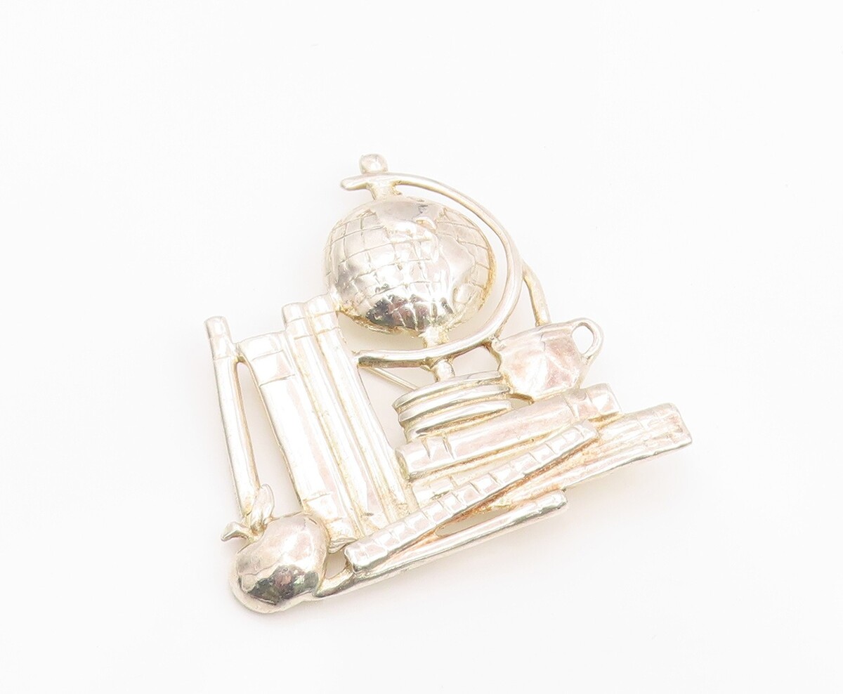 925 Sterling Silver Vintage Brooch Pin Modernist Teacher School Supplies BP12380