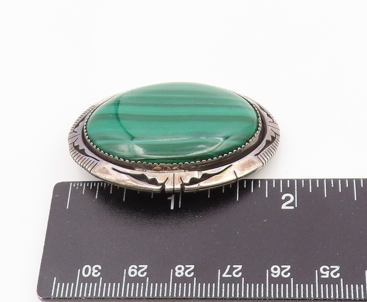 925 Sterling Silver Vintage Brooch Pin NAVAJO Oval Cabochon Malachite BP12341