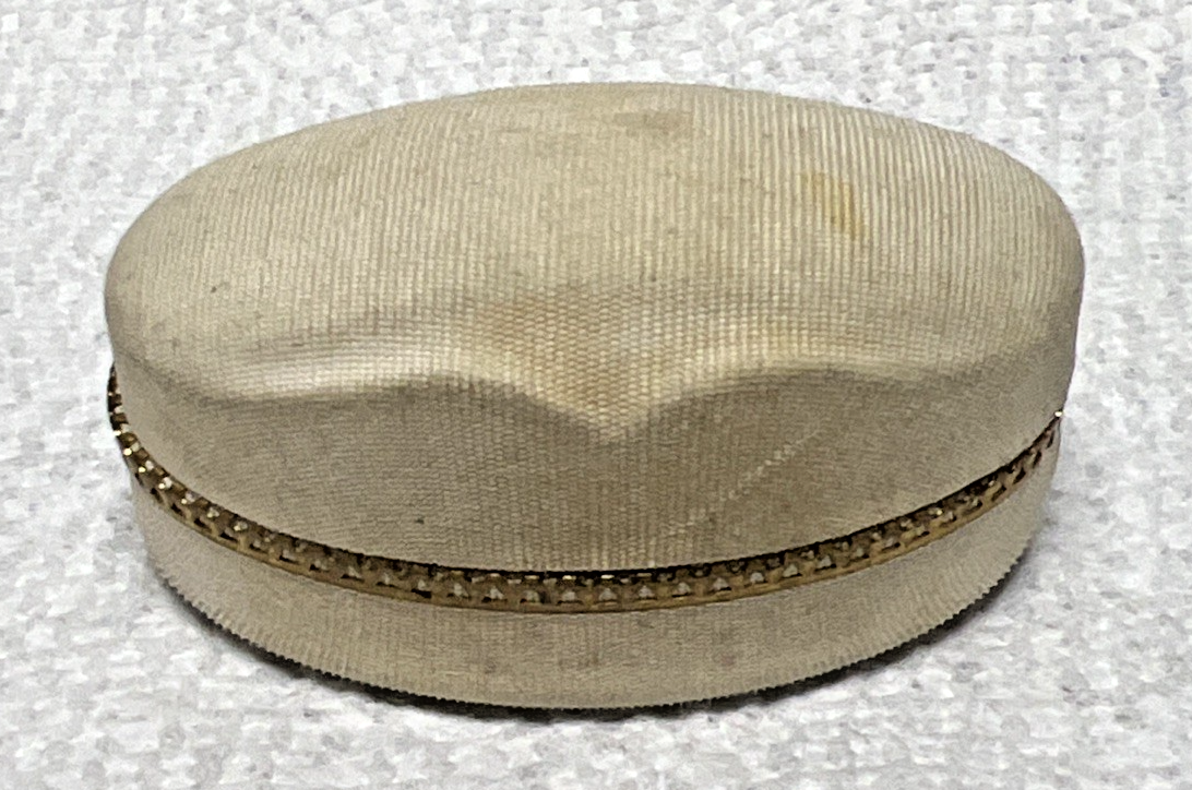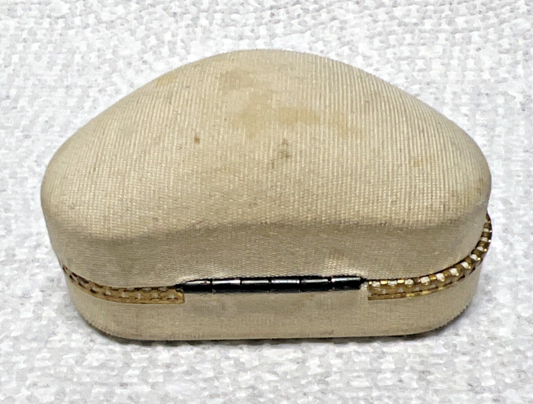 Vintage Reingolds Jewelers Portland Ore Ring Presentation Jewelry Box White Cream Color Cloth Silk Outer Covering Velvet Inside. Cream white ring jewelry box is mostly oval and measures approx. 2 1/4" long and 1 1/2" wide. Inside lettering some fading, some dirtiness to outside covering, no tears or damage I find. See pictures.