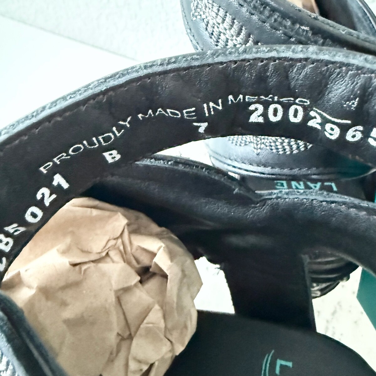 Lane Lexington Jet Black Leather Western Wedges Sandals Wood Heel Womens Size 7