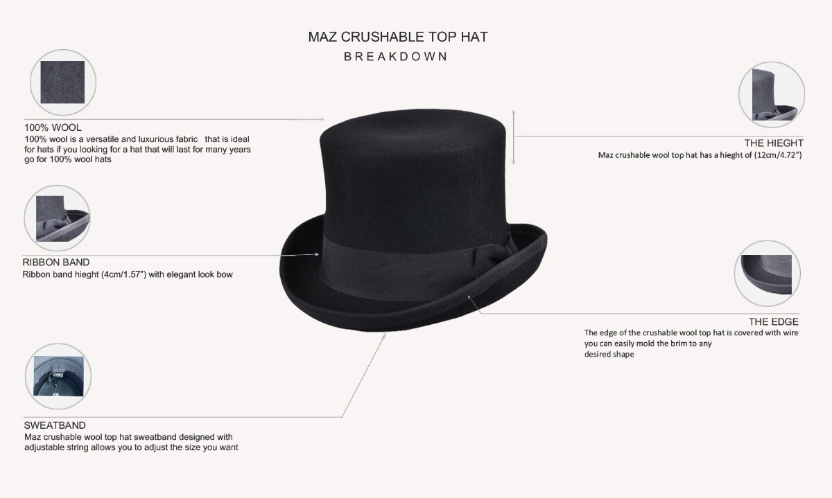 This soft wool top hat adds sophistication to your look while staying comfortable and flexible. Whether it?s for a western outfit, a costume, or just classic style, this hat delivers quality and charm.