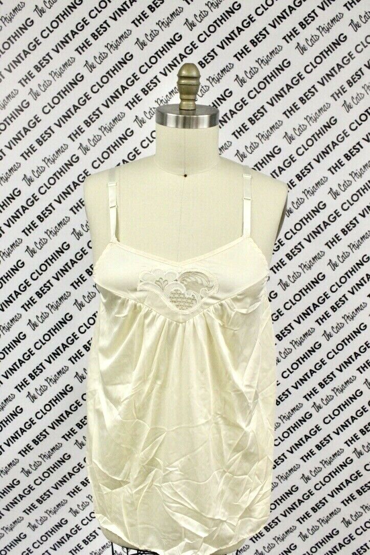 Retro VTG Womens Beige Camisole Mary Jane 100% Antron III Nylon Lace M NIP