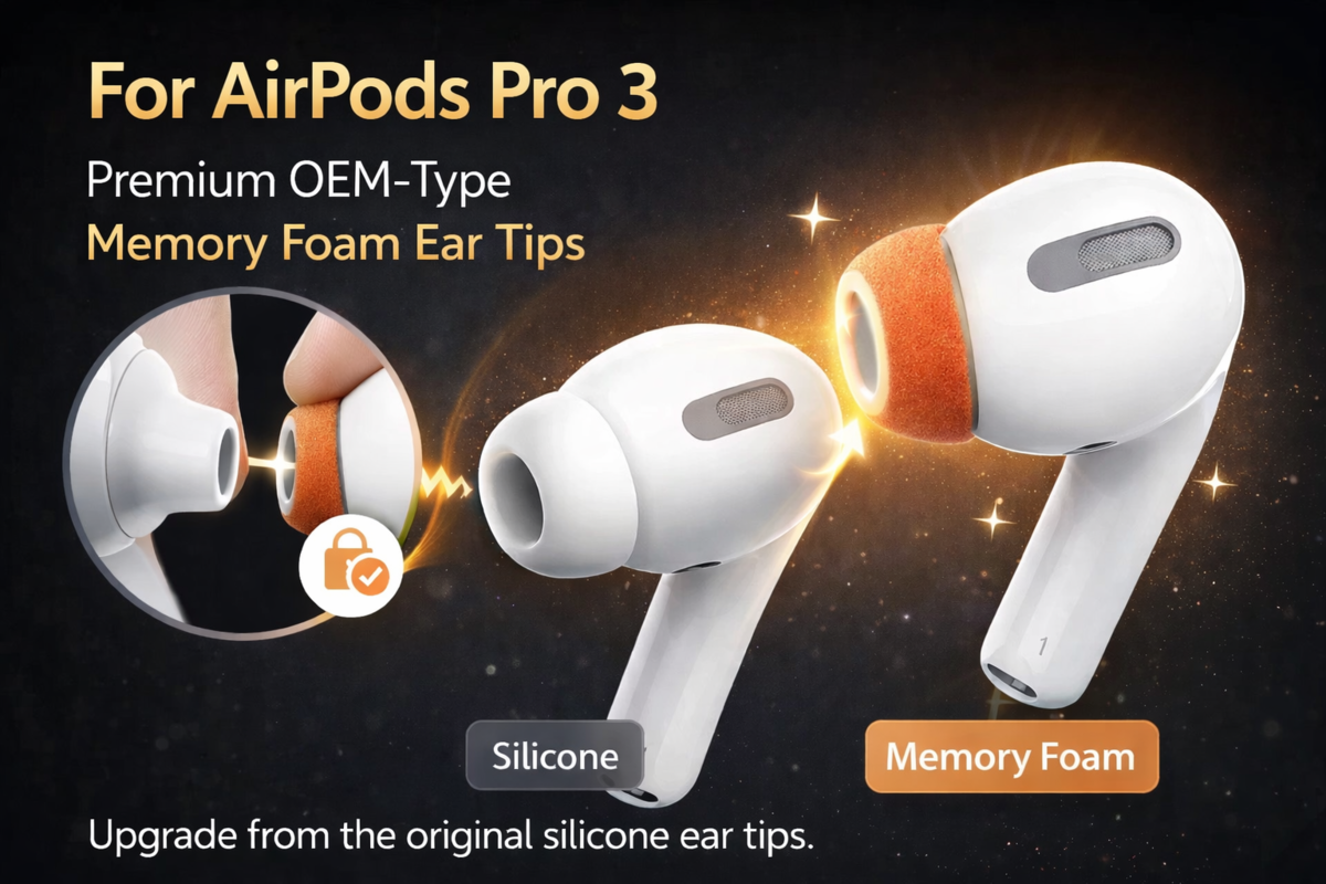 Silicone Memory Foam Core Ear Tips for AirPods Pro 3 (2025) S/M/L - 3 Pairs