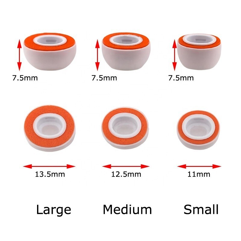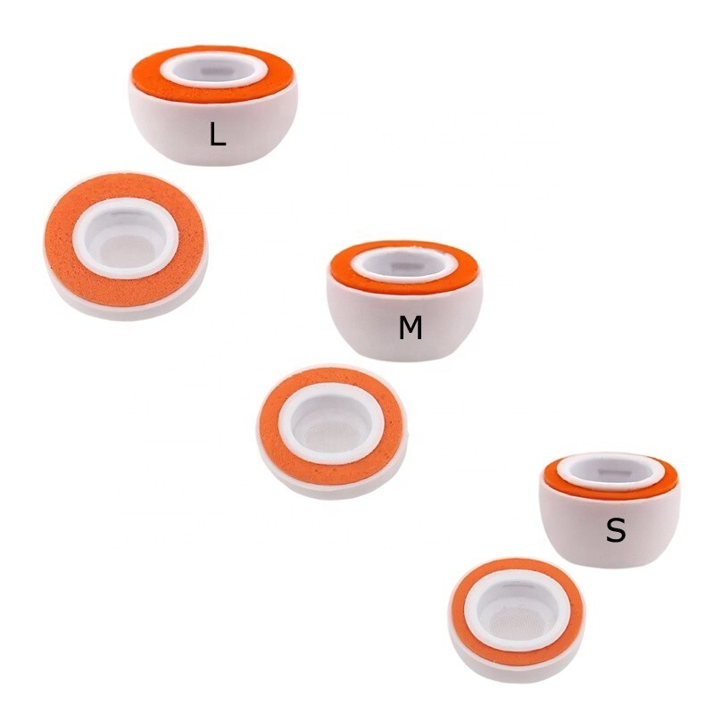 Silicone exterior with a premium high-quality orange memory foam core for superior comfort and performance. These ear tips are soft, secure, and specifically designed for AirPods Pro (3rd Generation). The hybrid design creates an excellent seal to reduce outside noise, enhance bass response, and provide a stable fit. Available in three sizes (S / M / L) to ensure the perfect fit.