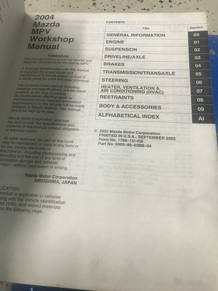 step by step Instructions, exploded illustrations and/or diagrams, great manual to have when you own a Mazda MPV Van and it will keep your vehicle on the road. This manual will save you money in Repairs/Service.