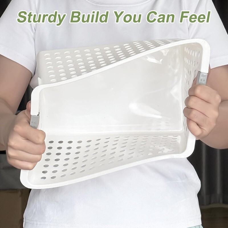 ?Durable Reliable Plastic?Crafted from thick plastic, this bin offers excellent resistance to cracking, bending, and odors, this storage bin with handles is strong, lightweight. Great for everyday organization in pantry, closet, under sink or laundry room