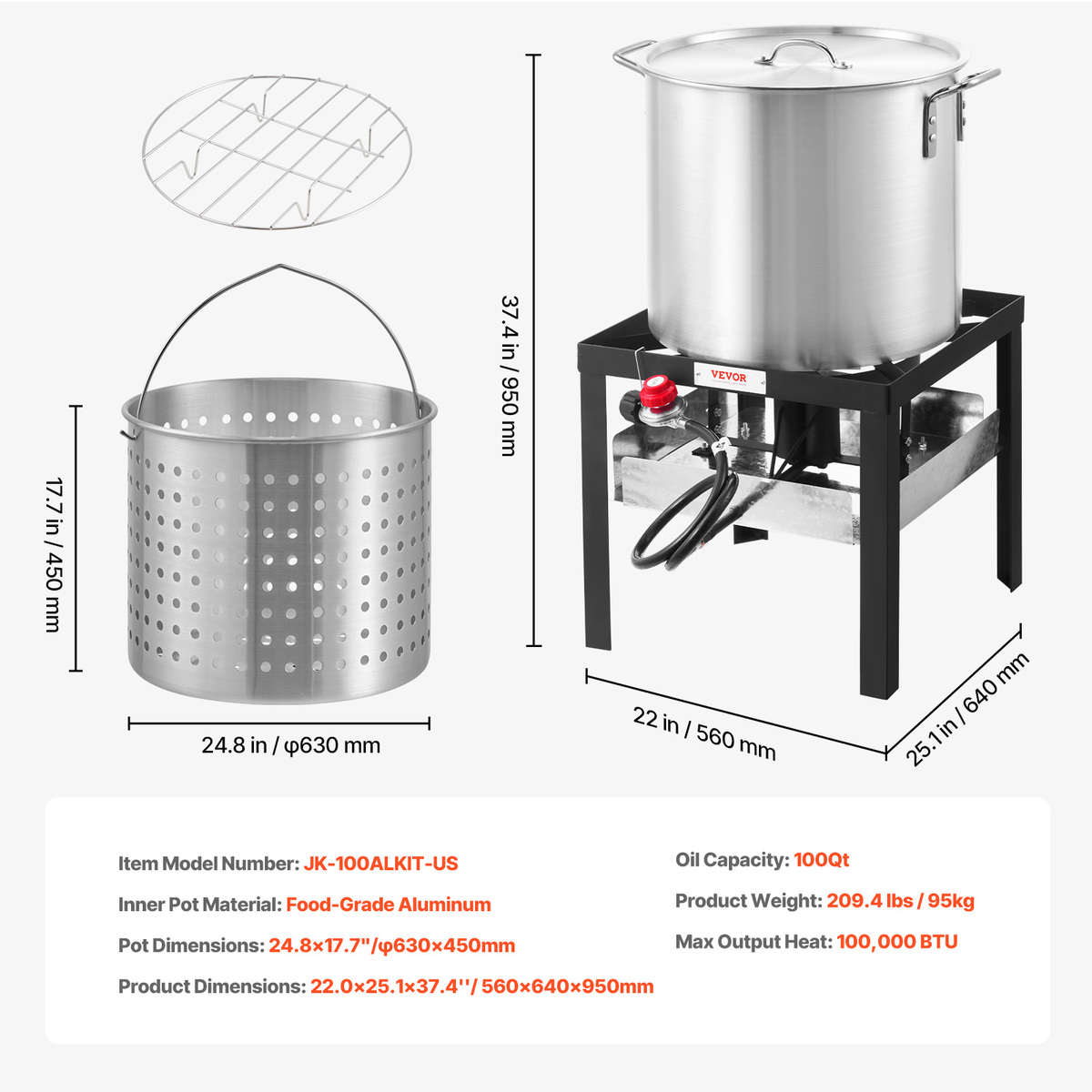 VEVOR 100-qt Seafood Boil Kit 100k BTU Aluminum Strainer Basket Burner Rack