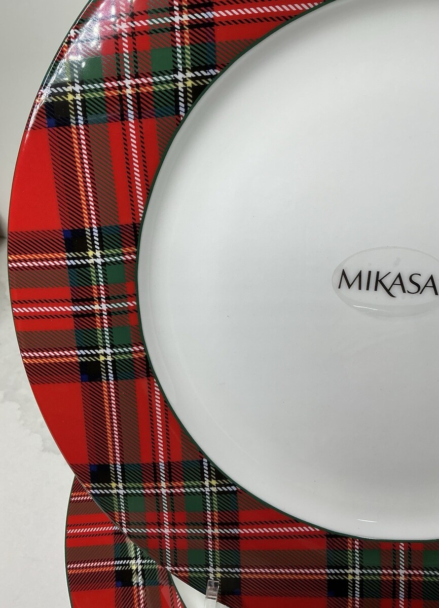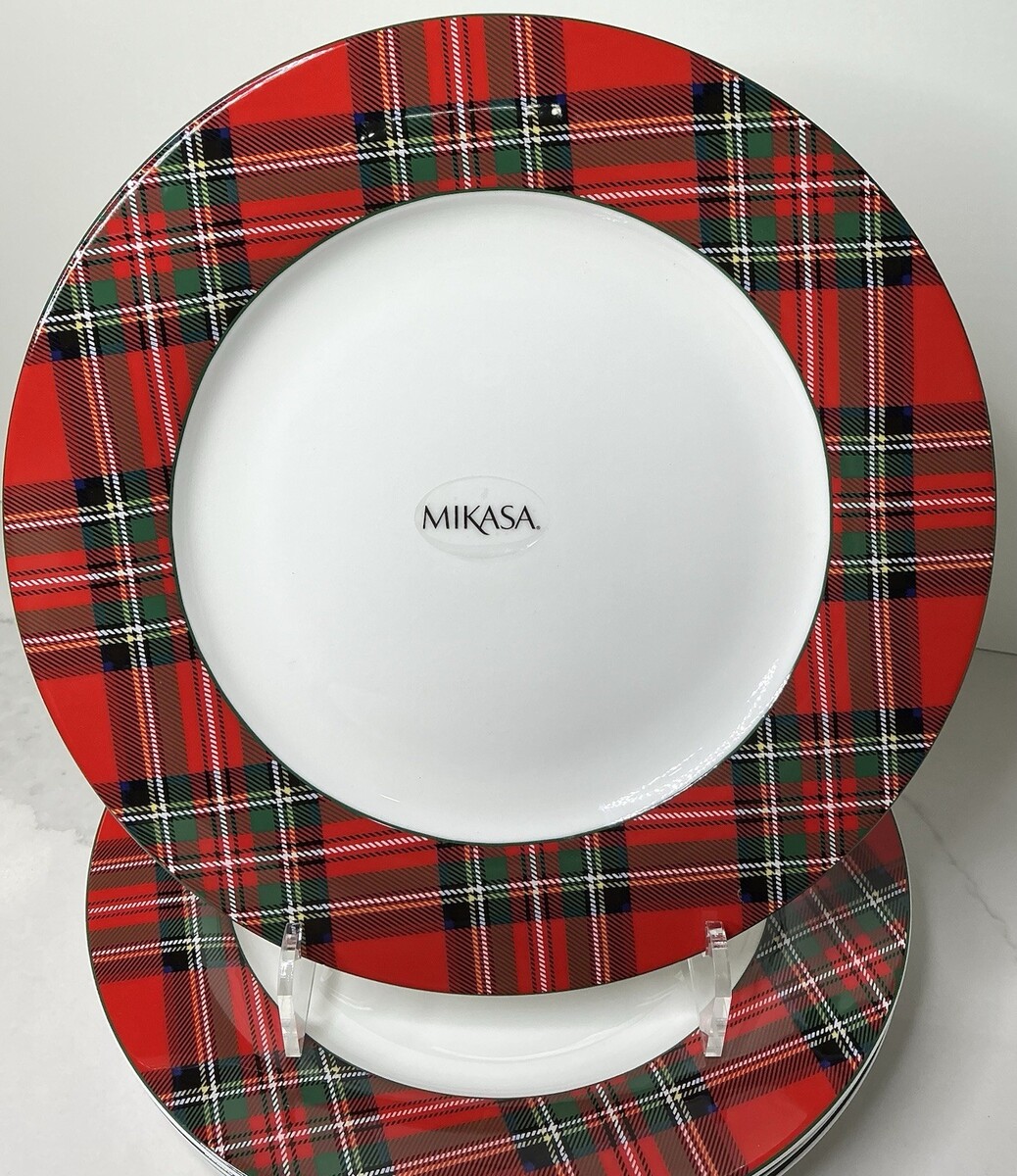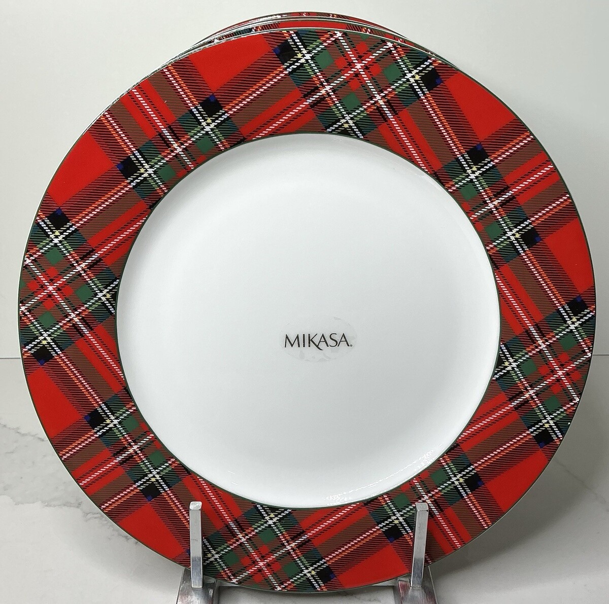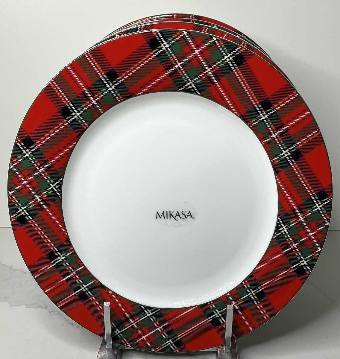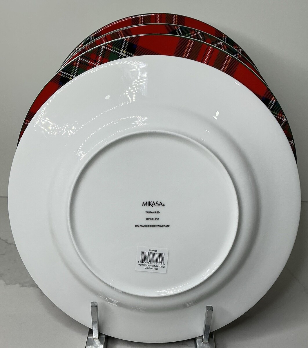 4 Mikasa Dinner Plates Bone China Christmas Tartan Plaid Red 11? New set 4