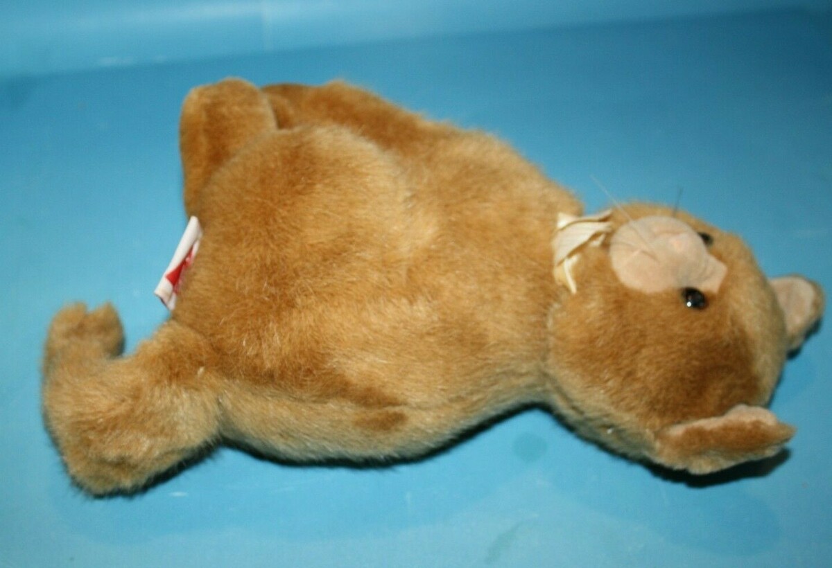 Creations by Dakin, Vintage 1995, Stuffed Animal, Cat, Sits Approx 10 inch, Brown Plush, Bow, Soft Toy, Sitting Kitten
