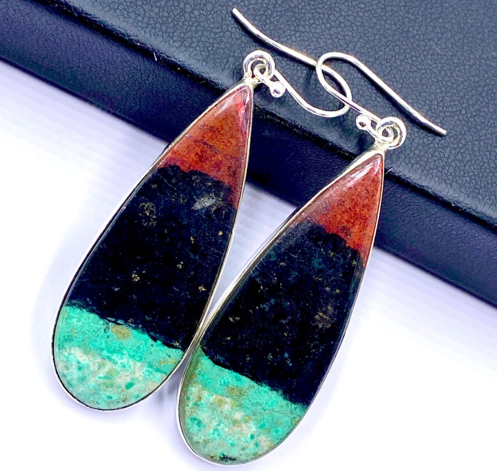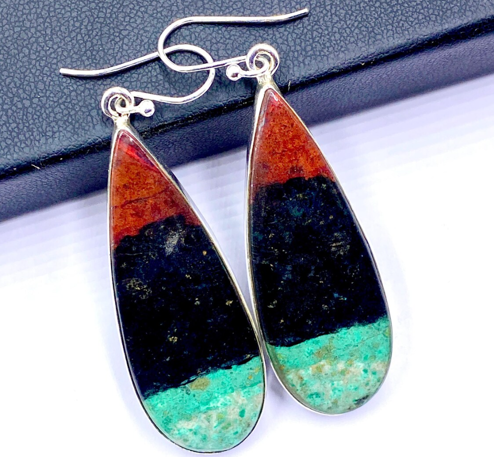 92.5 Silver Earring - Sonora Sunrise Cabochon Silver Earring Pair - 46x17mm
