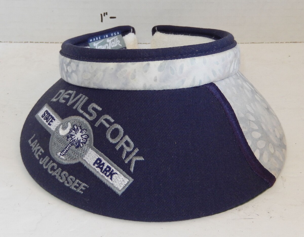 For Sale is a rare and hard to find Womens Devils Fork State Park Golf Visor Hat Cap Blue White Lake Jucassee. its In good USED Condition as pictured. no rips tears just some minor handling wear. Please ask Any and All Questions prior to purchasing. Fast Same or Next day shipping with Free Delivery Confirmation within the U.S. Payment Due within 7 days of purchase (if you need more time please let us know In advance) we love to combine shipping is always a Yes and Most of the time Additional Items Ship for free.