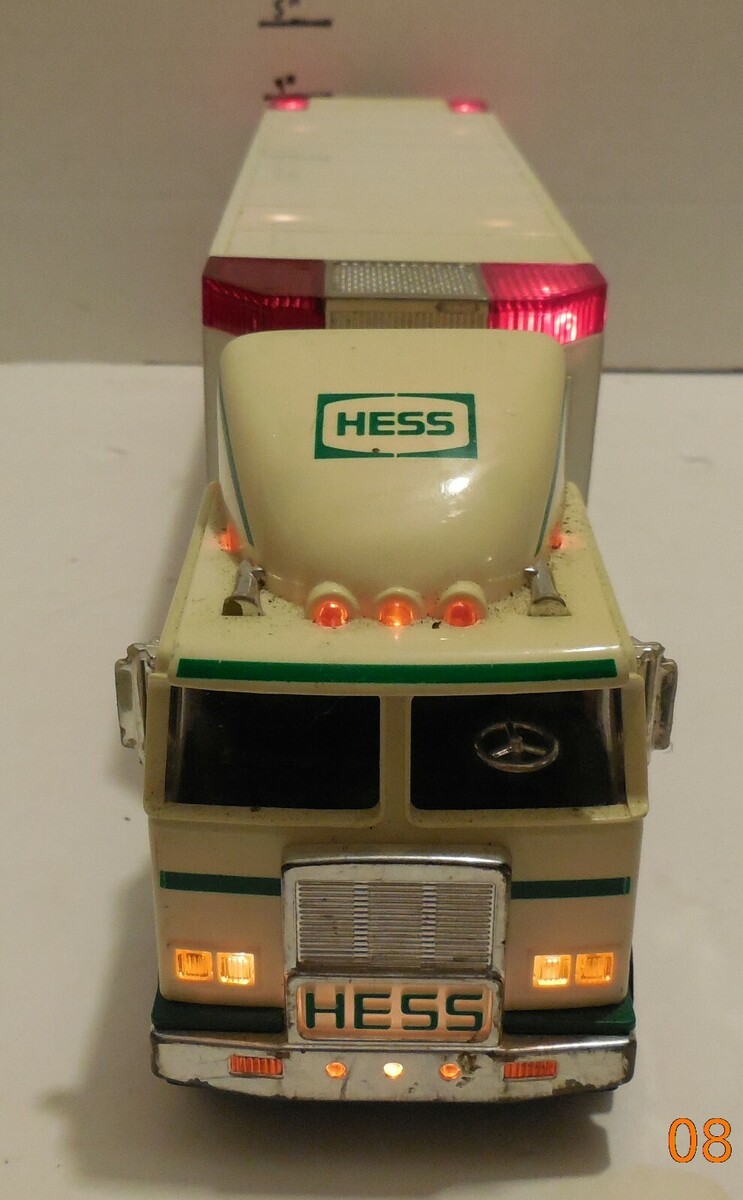 For Sale is a rare and hard to find 1997 Hess Gasoline Toy Truck and Racers NO BOX as pictured in good used condition. NO BOX, Inserts or Manual What you see is what you will receive if its not pictured its not included. Please see pictures provided for More Details. would make a wonderful addition to any Toy collection. Please ask Any and All Questions prior to purchasing. Fast Same or Next day shipping with Free Delivery Confirmation within the U.S. Payment Due within 7 days of purchase (if you need more time please let us know In advance) we love to combine shipping is always a Yes and Most of the time Additional Items Ship for free.