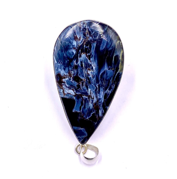 92.5 SILVER PENDANT - Pietersite Cabochon Pendant - Pear Pendant - 54x30mm