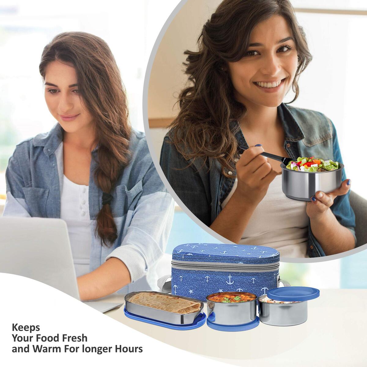 Product description: Milton Corporate Lunch 3 Stainless Steel Container Lunch Box with Bag, Blue, 500 280 ml