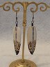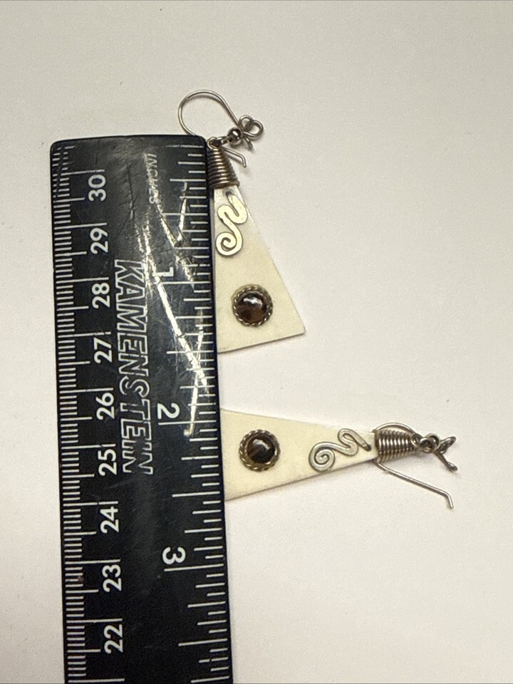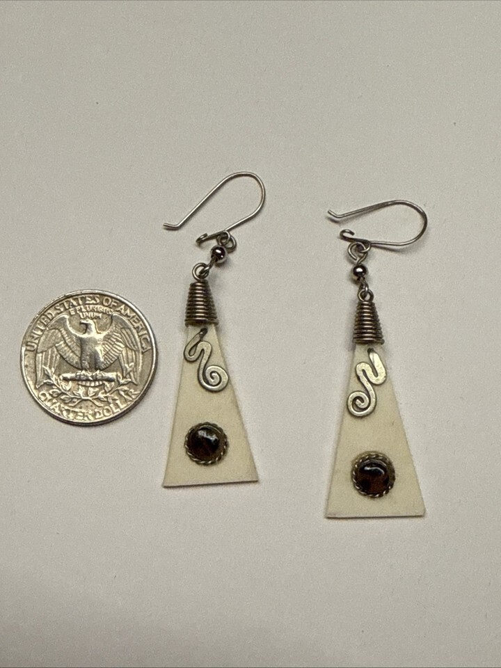 Vintage Triangle Cow Bone Pierced Earrings 1.5” Drop Motion Mahogany Obsidian