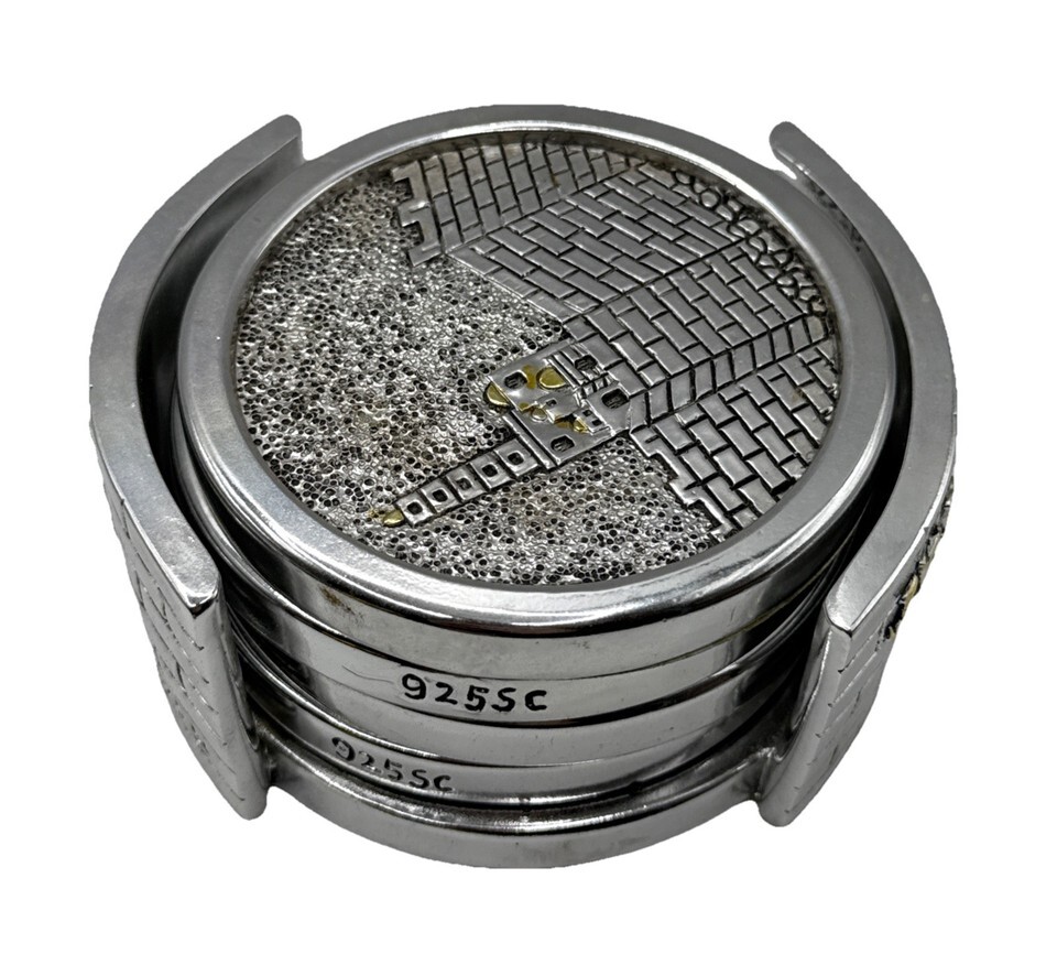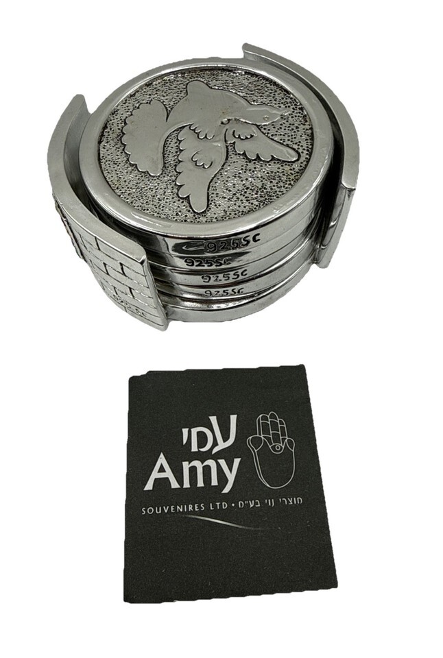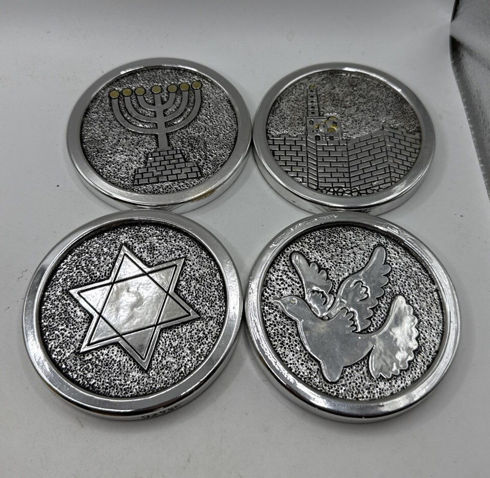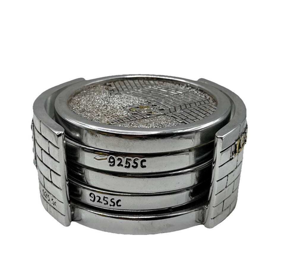 Vintage Sterling Silver 925 SC Jerusalem 4 pc Coaster Set Israel Amy Souvenirs