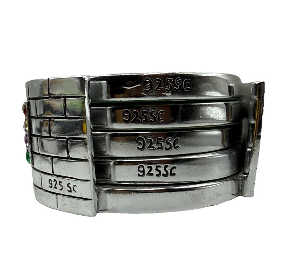 These four coasters are all marked 925, have a felt bottom, and the sterling set holder is bejeweled on one side with 12 colored gems for the twelve tribes.