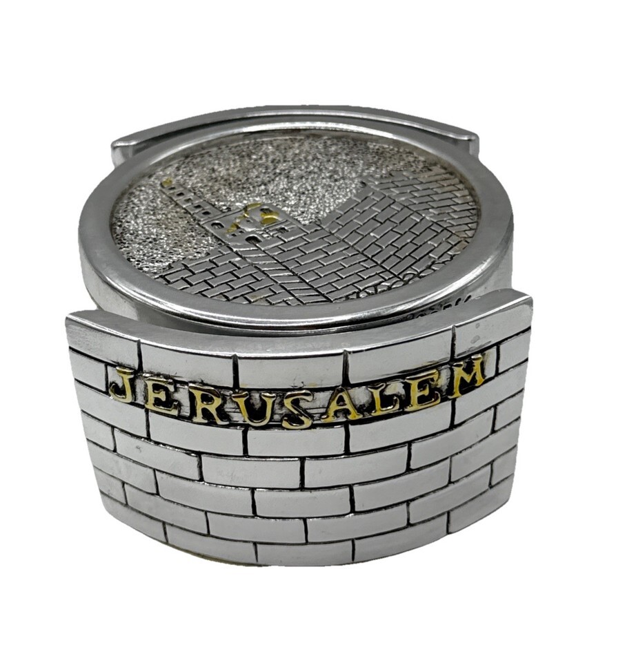 The Vintage Sterling Silver 925 SC Jerusalem 4 pc Coaster Set is a unique and meaningful collectible item that showcases the beauty and significance of Judaism. Made in Israel, this set includes four coasters featuring intricate designs inspired by the holy city of Jerusalem. Perfect for those with a passion for religion and spirituality, these coasters serve as a tangible reminder of the rich history and traditions of the Jewish faith. Ideal for collectors or those looking for a special souvenir to commemorate a visit to Israel.