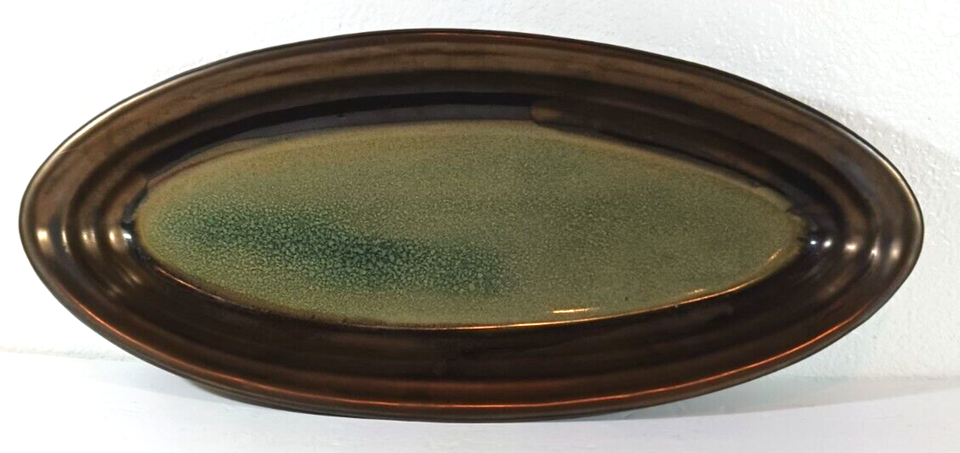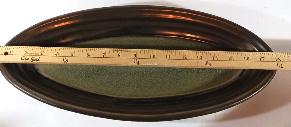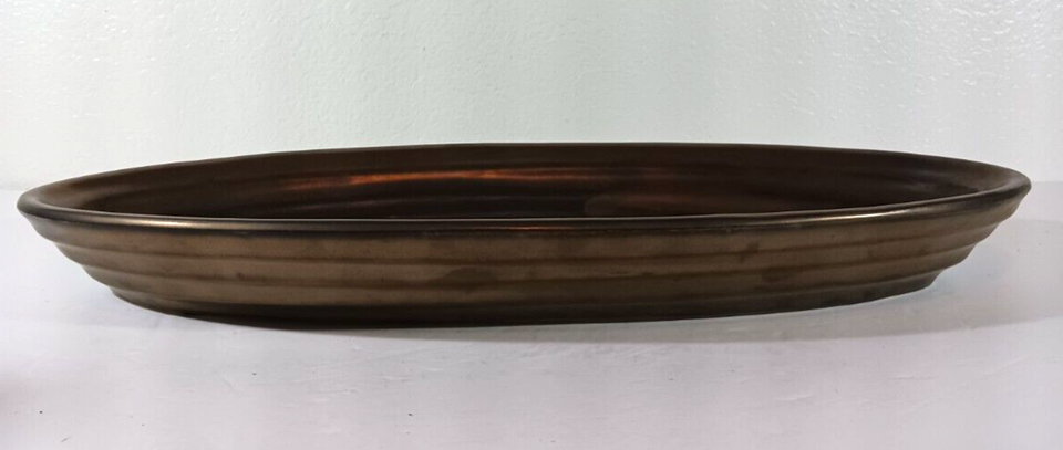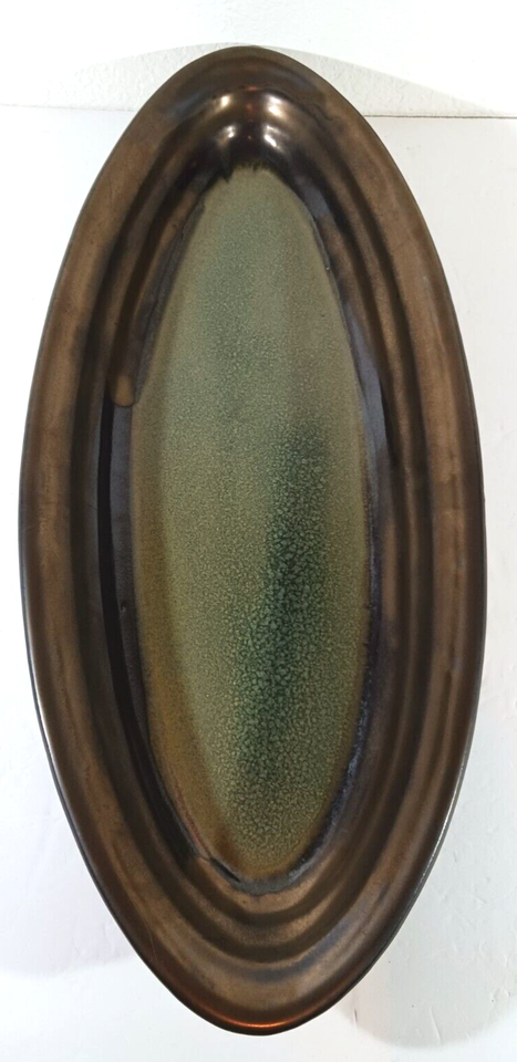 VERY LARGE 18" x 8" ART POTTERY CONSOLE BOWL Dish Tray Oblong Oval HEAVY Brown