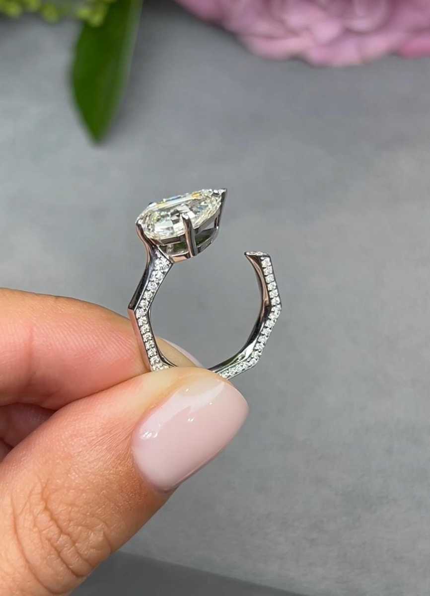 GUnique Decagonal Cut Solid Gold Half Bezel Set Ring For Gift