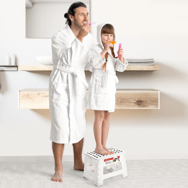 Space Saving Foldable Stool -ACSTEP step stool saves your closet space more than 90% when it is folded up. It's quickly and easily folded for convenient storage so you can open with one flip of the hand. Also, you can hide them in a corner at home because it's so compact.