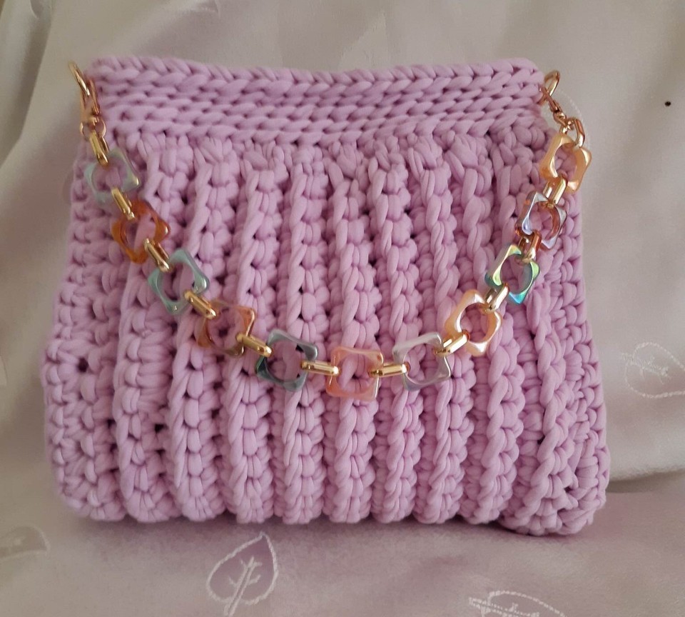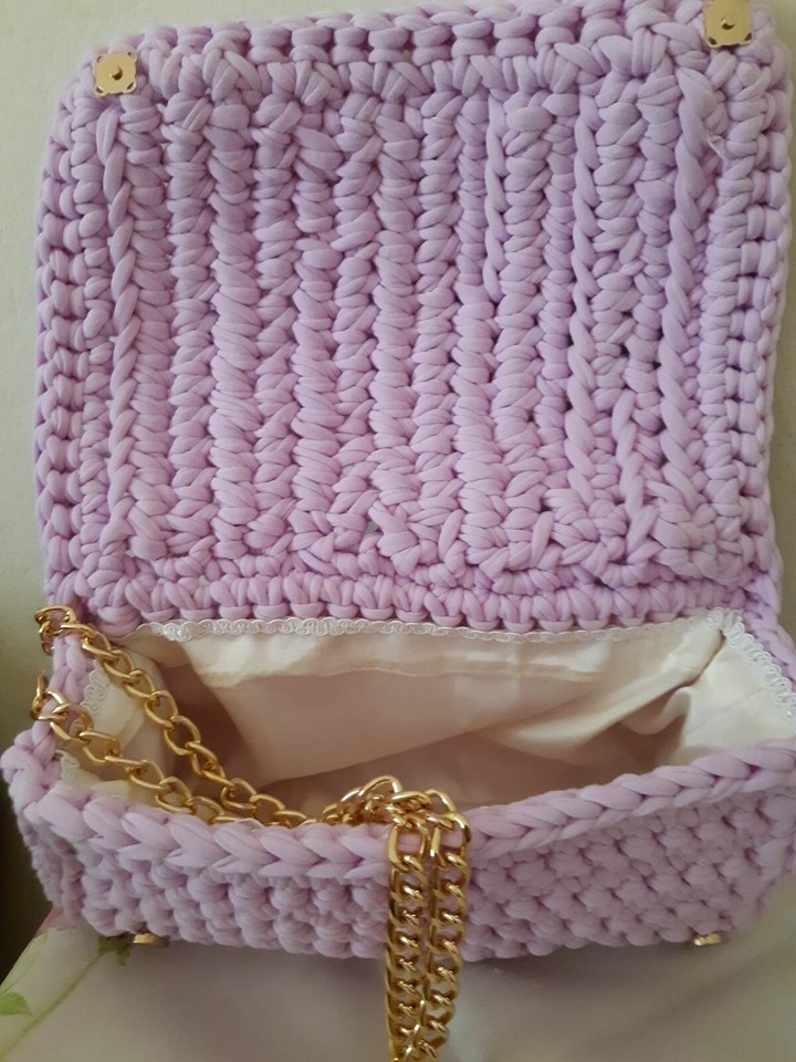 Handmade knitted bag measuring 26x28cm.and 26x11cm.With padding. Cross body, shoulder and with handle