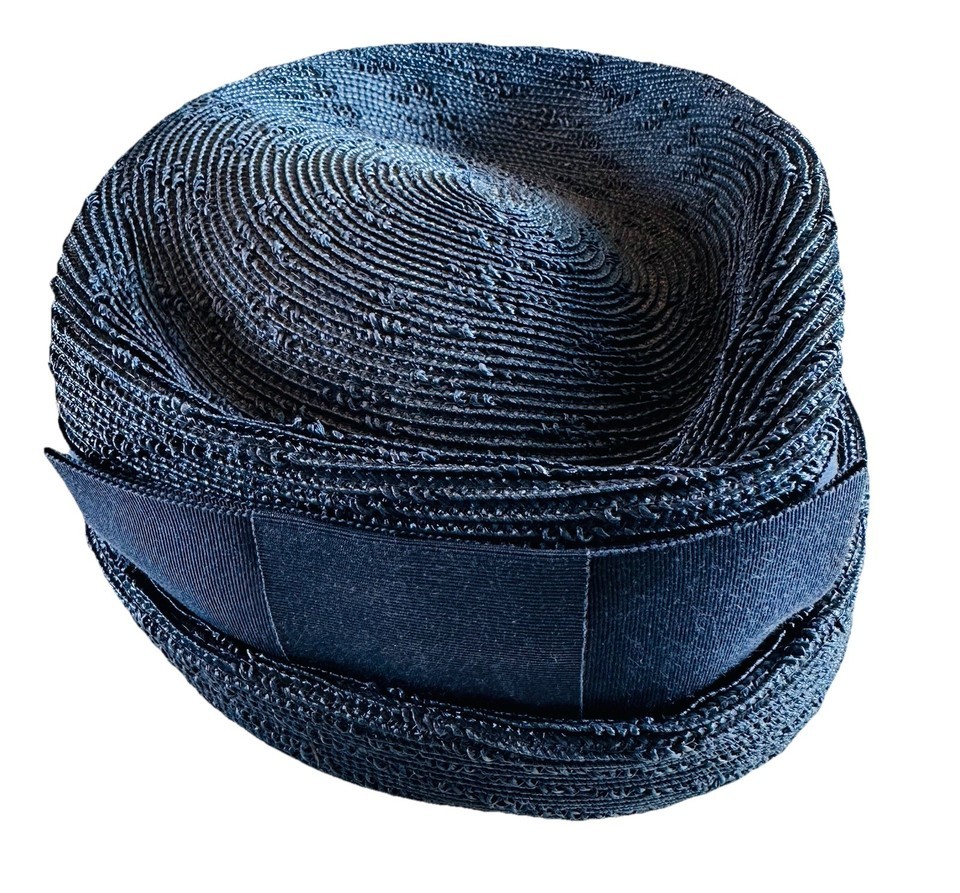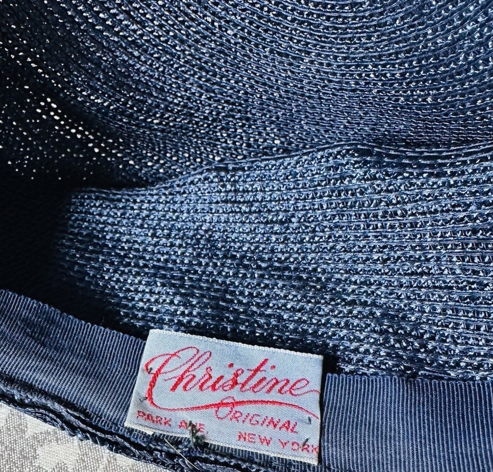 Christine Original in navy blue. Some light makeup on the inside. 7? across.