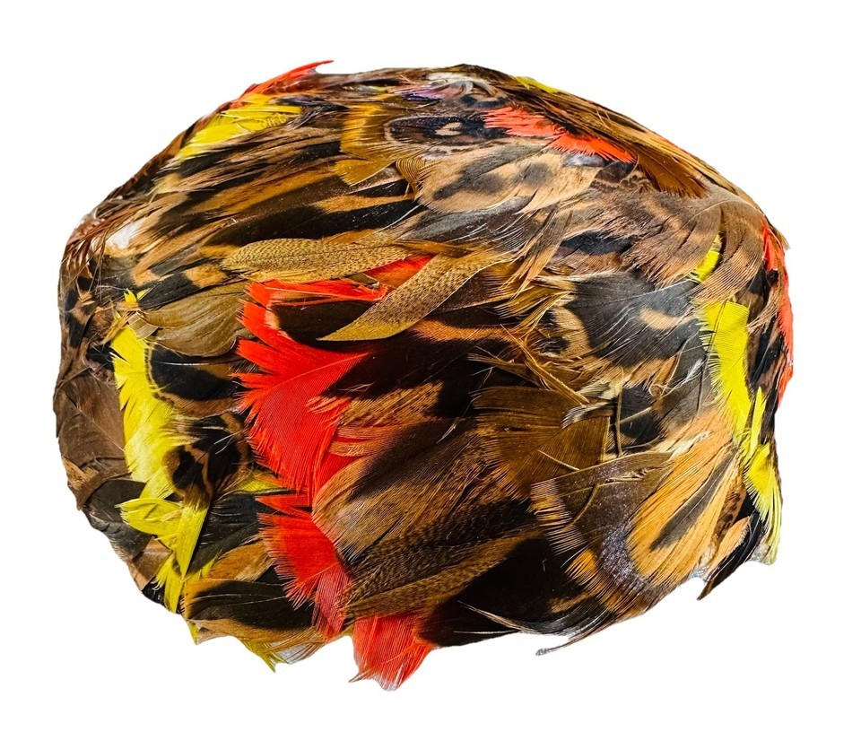 The Vintage Ladies Valerie Modes Pheasant Feathers Hat with a multicolored design. Some feathers are missing on side. See picture.