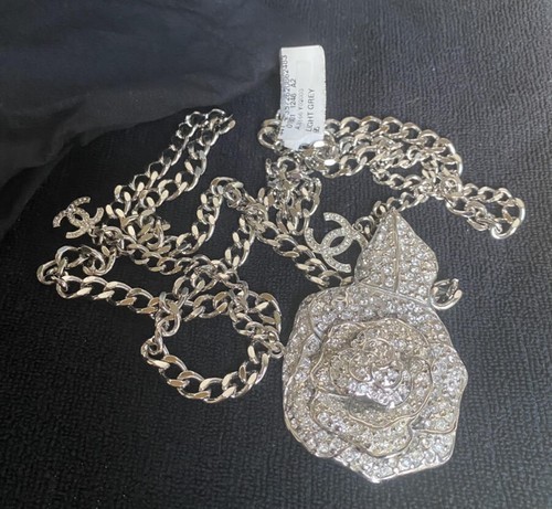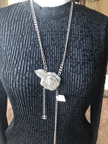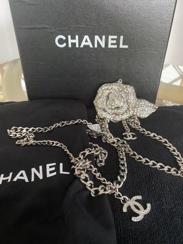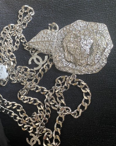 NWT 07 Chanel Runway Crystal Camellia CC Silver Chain Adjustable Belt/Necklace