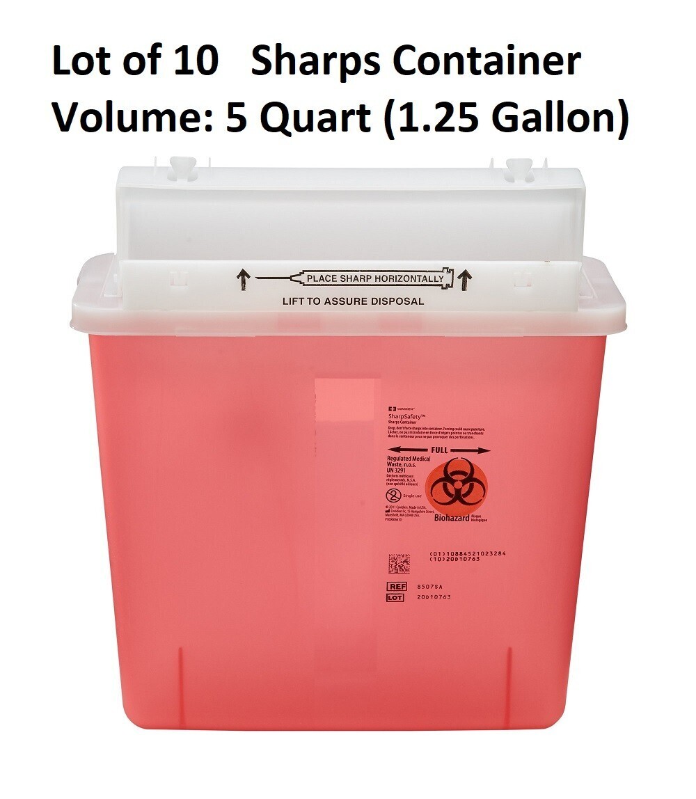 Quantity: - 10 Count Sharps Container with Lid, Size: 5 Quart/1.25 Gallon