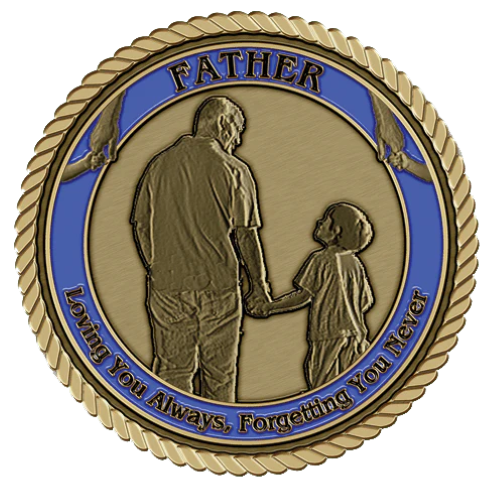 This medallion has been carefully researched and expertly designed with focus toward important details. When a 3D design is prepared a plastic sculpt is fashioned and then converted to a hardened synthetic mold from which a magnesium die is created. The base metal is a proprietary brass composition. The metal is melted and formed into strips after which it travels on a metal conveyor belt where the annealing process softens the outer surface preparatory for stamping. As the medallion is processed it is struck with more than 360 tons of pressure. With pinpoint accuracy enamel applicators place color and other accents onto the surface. The medallion is then passed through a large kiln-like machine in which the electro-plating process fuses the enamels and antiquing to the metal base. The concluding phases include hand buffing the medallion and preparing it for packaging. Your medallion is warranted to not fade, discolor or yellow for 50 years.
