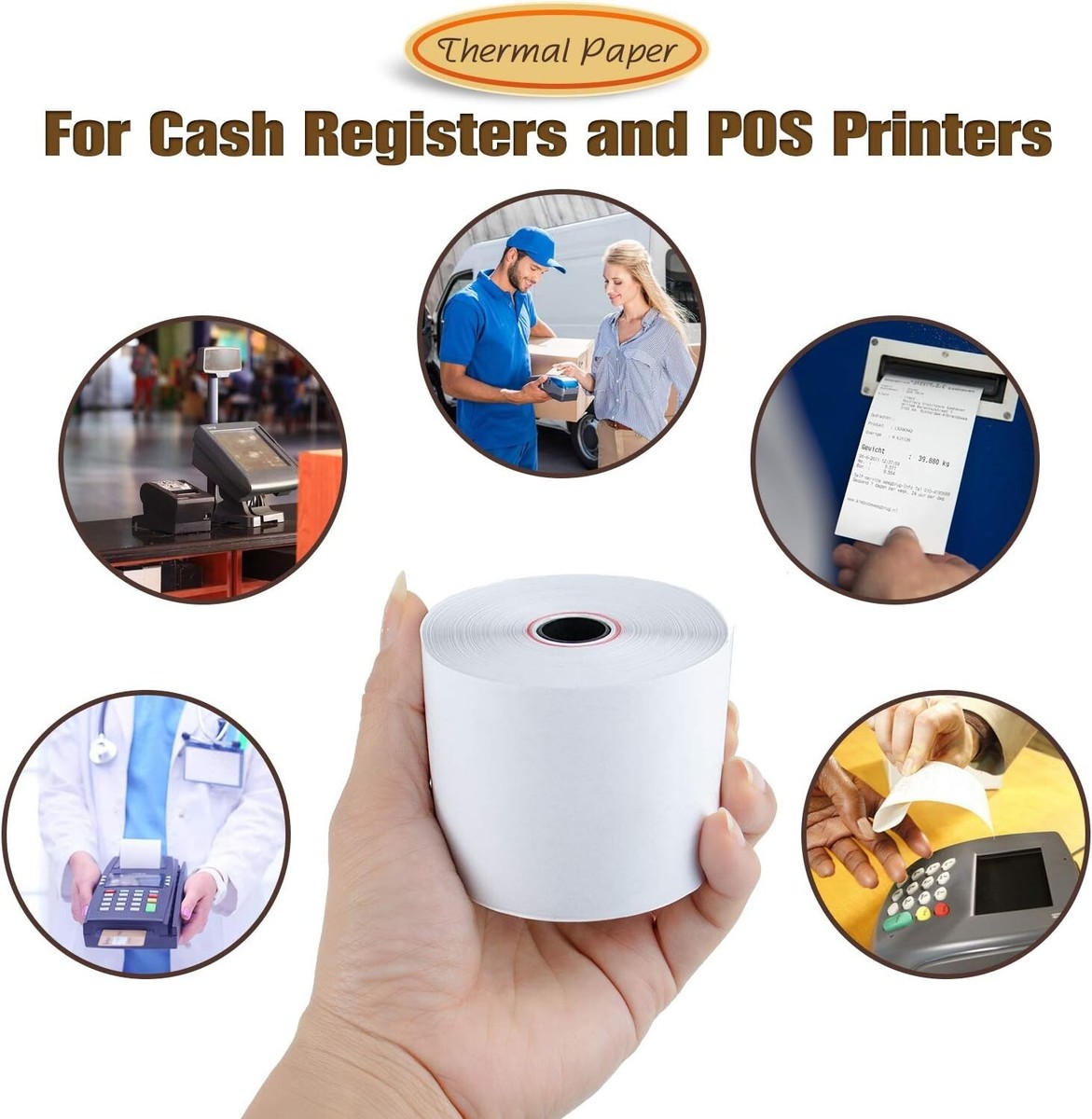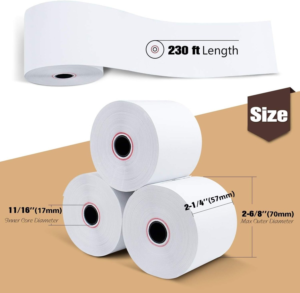 50 Rolls 2 1/4" x 230' Thermal Paper, POS Receipt Paper for Retail Business Cash Register, Fits Most Credit Card Terminal