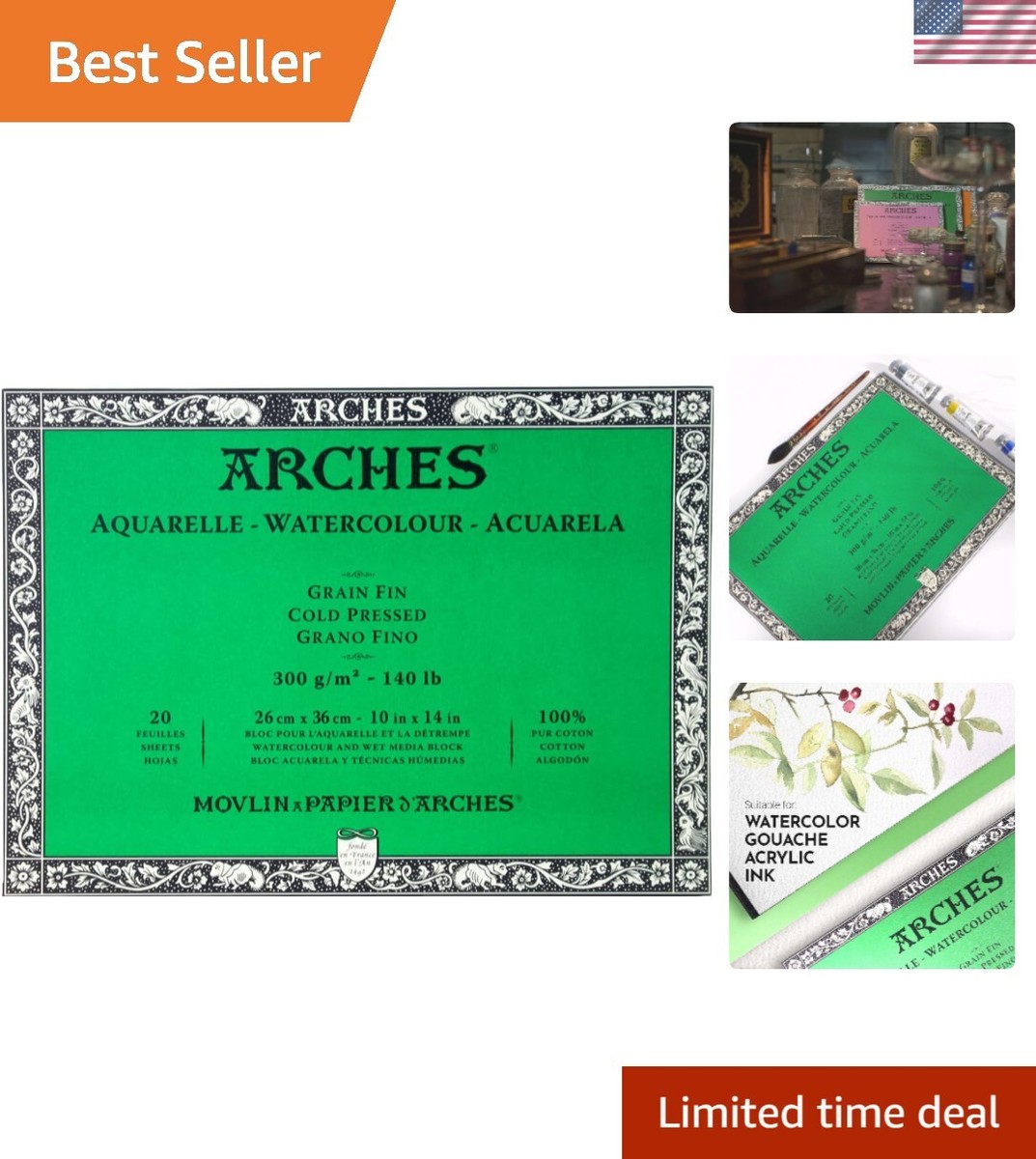 Arches Watercolor Block 10x14-inch Natural White 100% Cotton Paper - 20 Sheet...