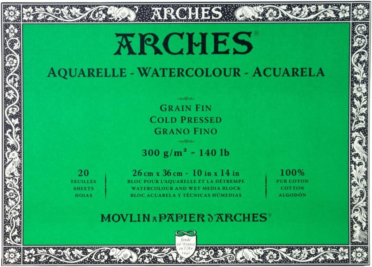 Exquisite Quality - Glued on all sides to preserve paper integrity, Arches cold press watercolor block boasts a protective cover sheet and pH-neutral paper with a harmonious natural grain and no optical brightening agents