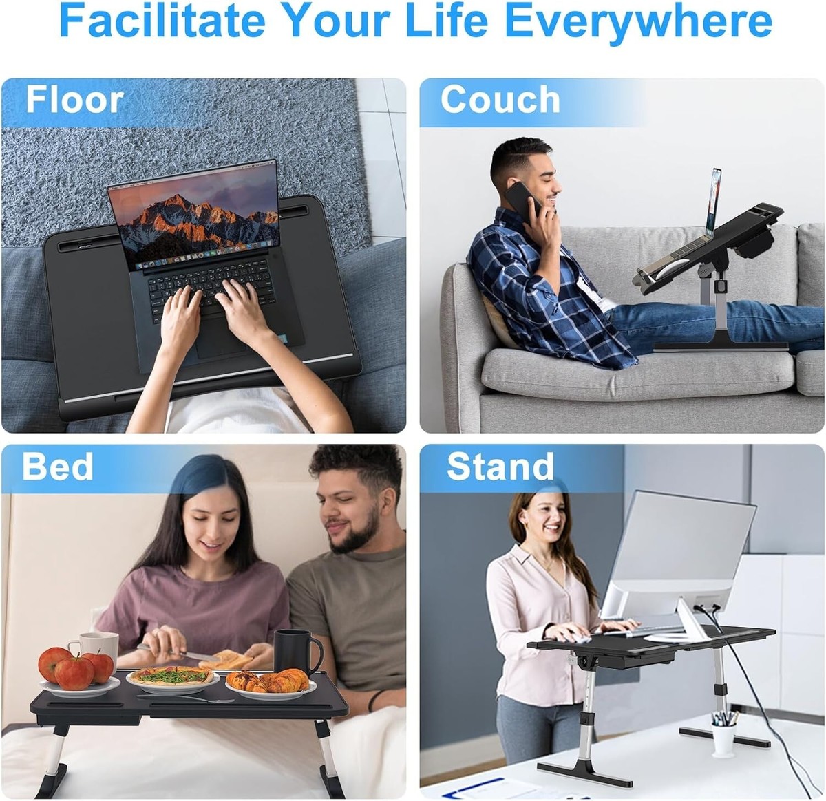 MULTIFUNCTIONAL LAPTOP BED DESK - The bed desk for laptop and writing will be a perfect supplement for your office and home. You can use it as a laptop stand, laptop couch table, office standing desk, mini writing desk, dining table, etc. to maximize its value.