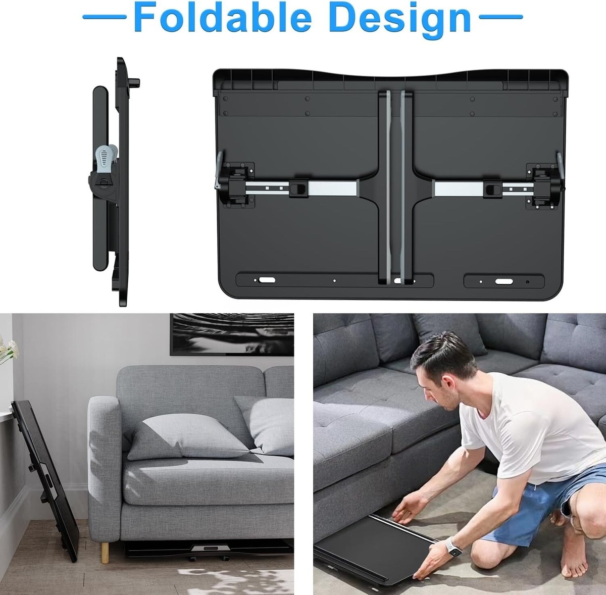 FOLDABLE PORTABLE - 2 thicker aluminum alloy table legs are super sturdy and can be folded easily. When folded the bed table can be placed under the sofa, bed, in the closet or other places to save more space. The portable laptop desk can also be carried with you for daily use.