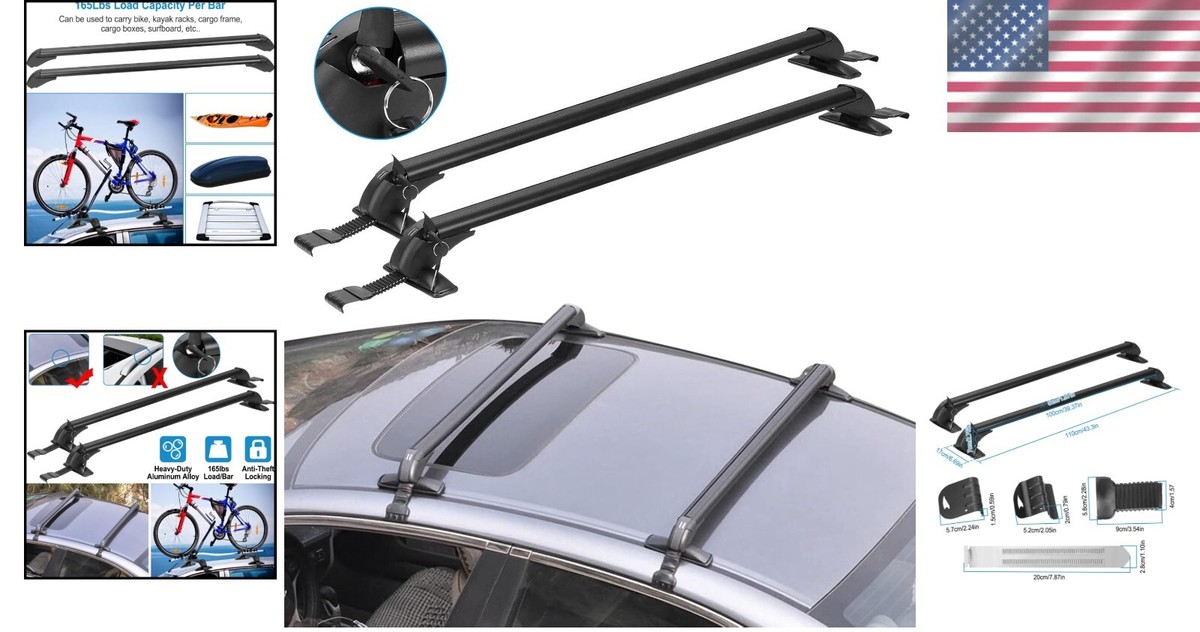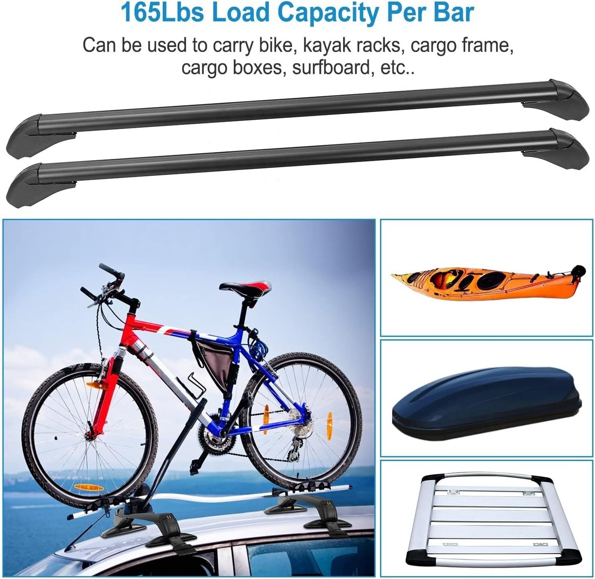 165LBS Load Capacity per bar, making it perfect for transporting bikes, kayak racks, cargo frames, cargo boxes, snowboards, surfboards, and more.