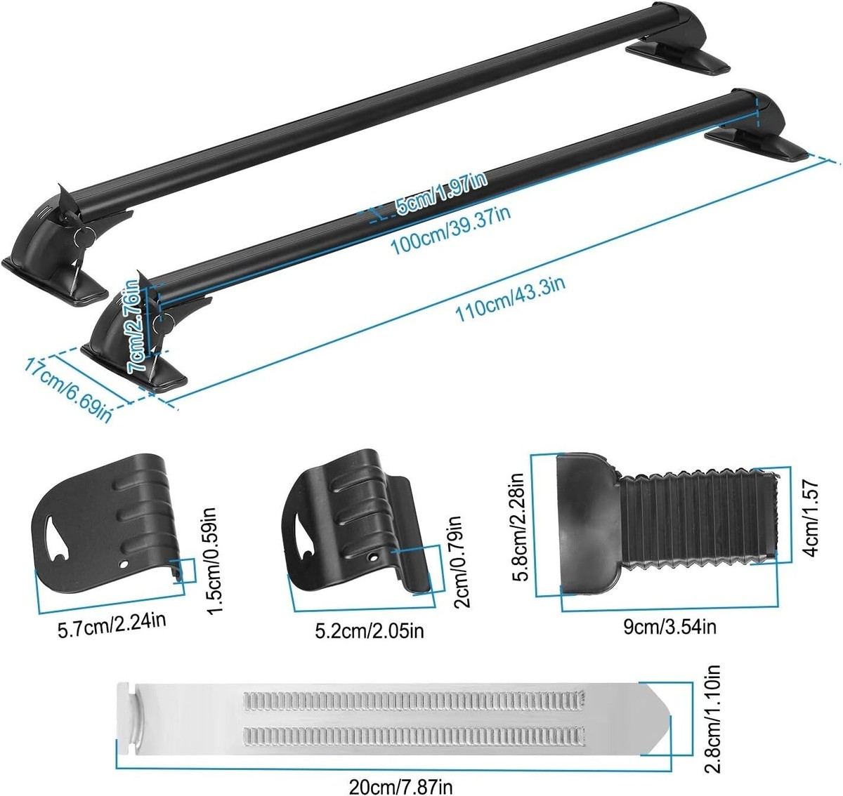 Effortless Installation 43" Aluminum Crossbars with High Load Capacity of 165LBS