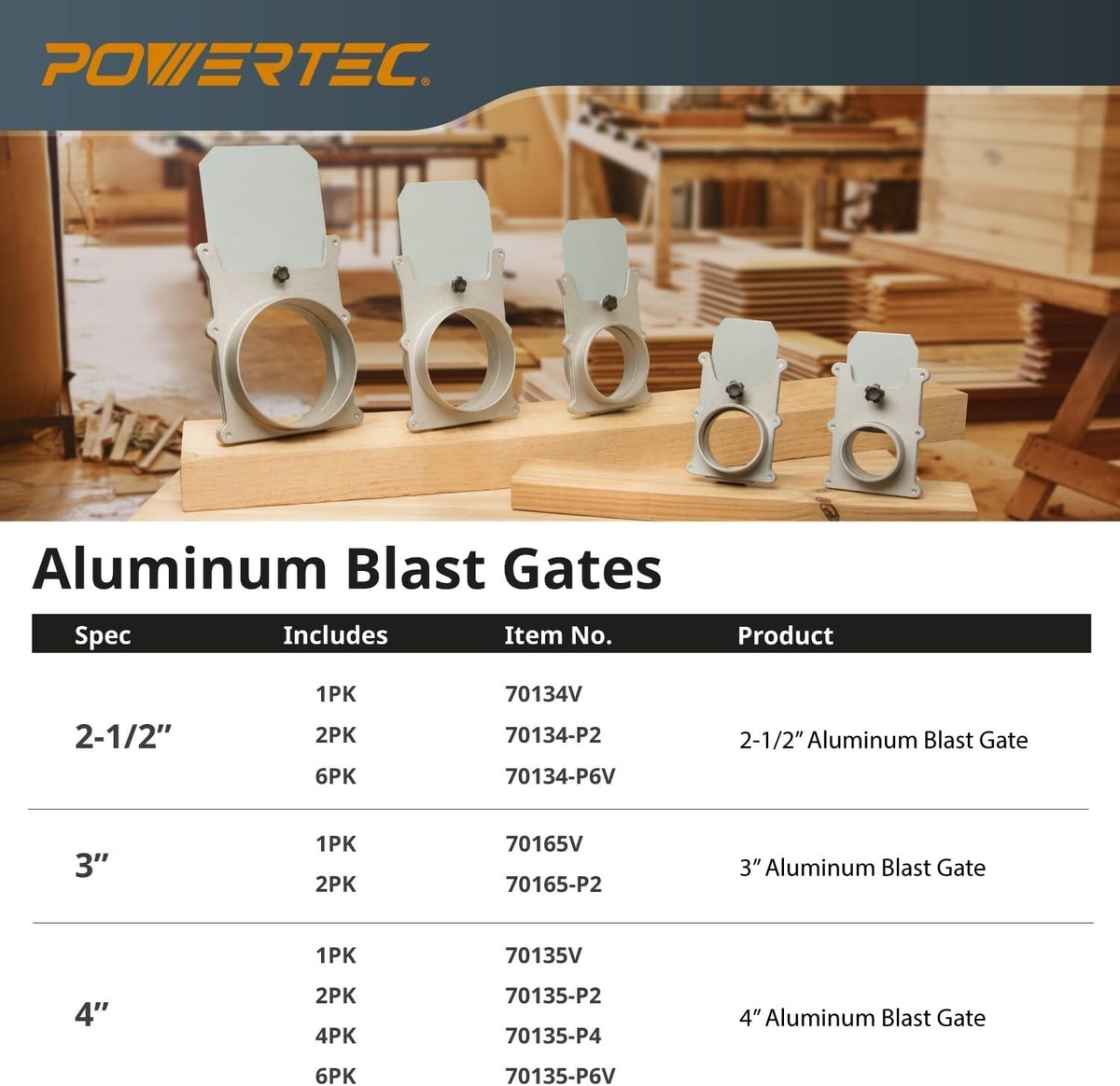 BUILD: Blast gate flaunts a heavy duty aluminum construction with a premium steel gate designed for eliminating air leakage, project flexibility and long-term usage