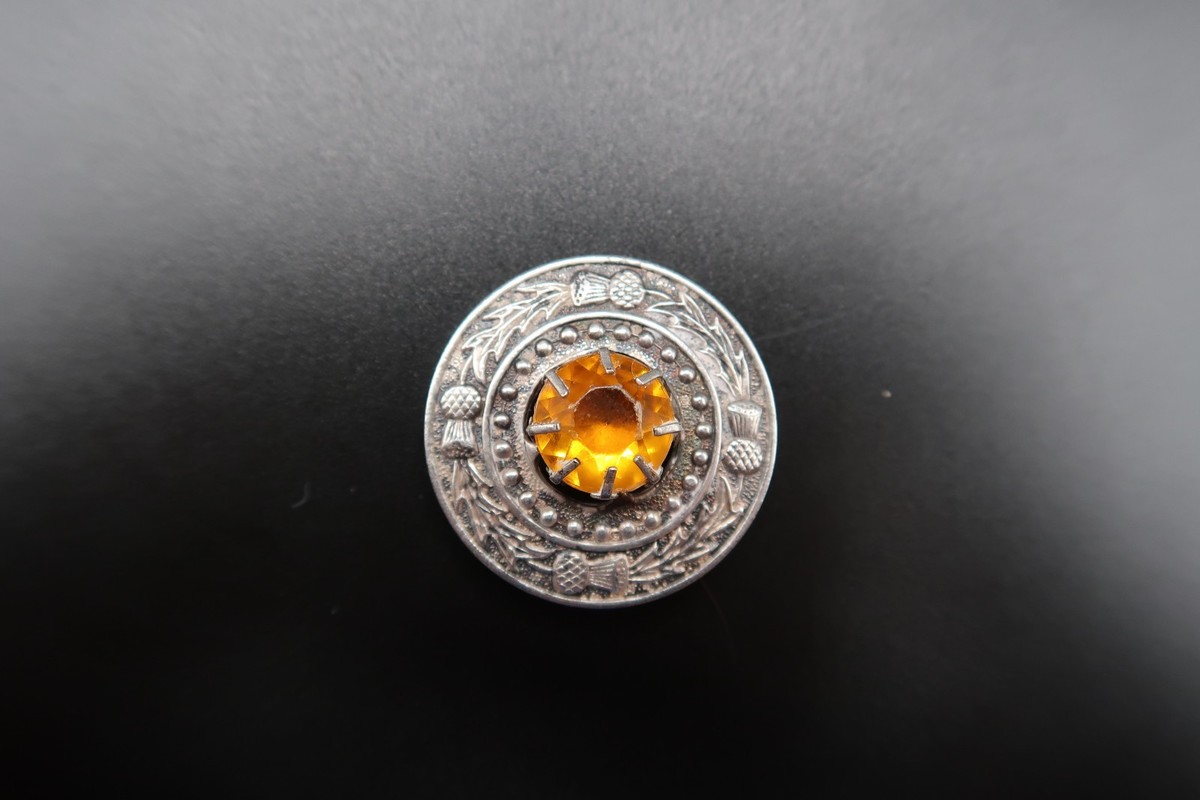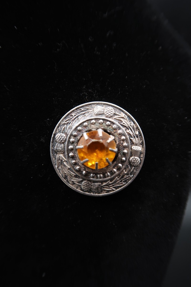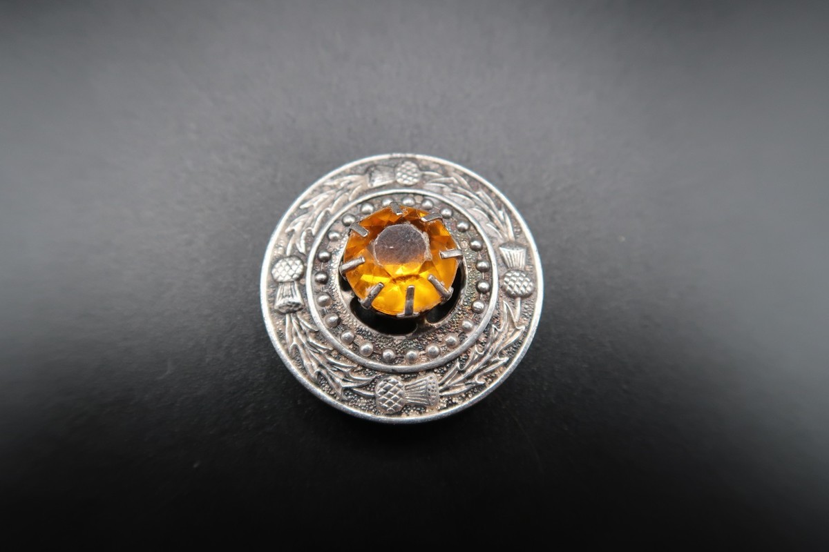 Vtg Scottish Thistle Brooch Slide Citrine Cairngorm Quartz Kilt Sampson & Mordan