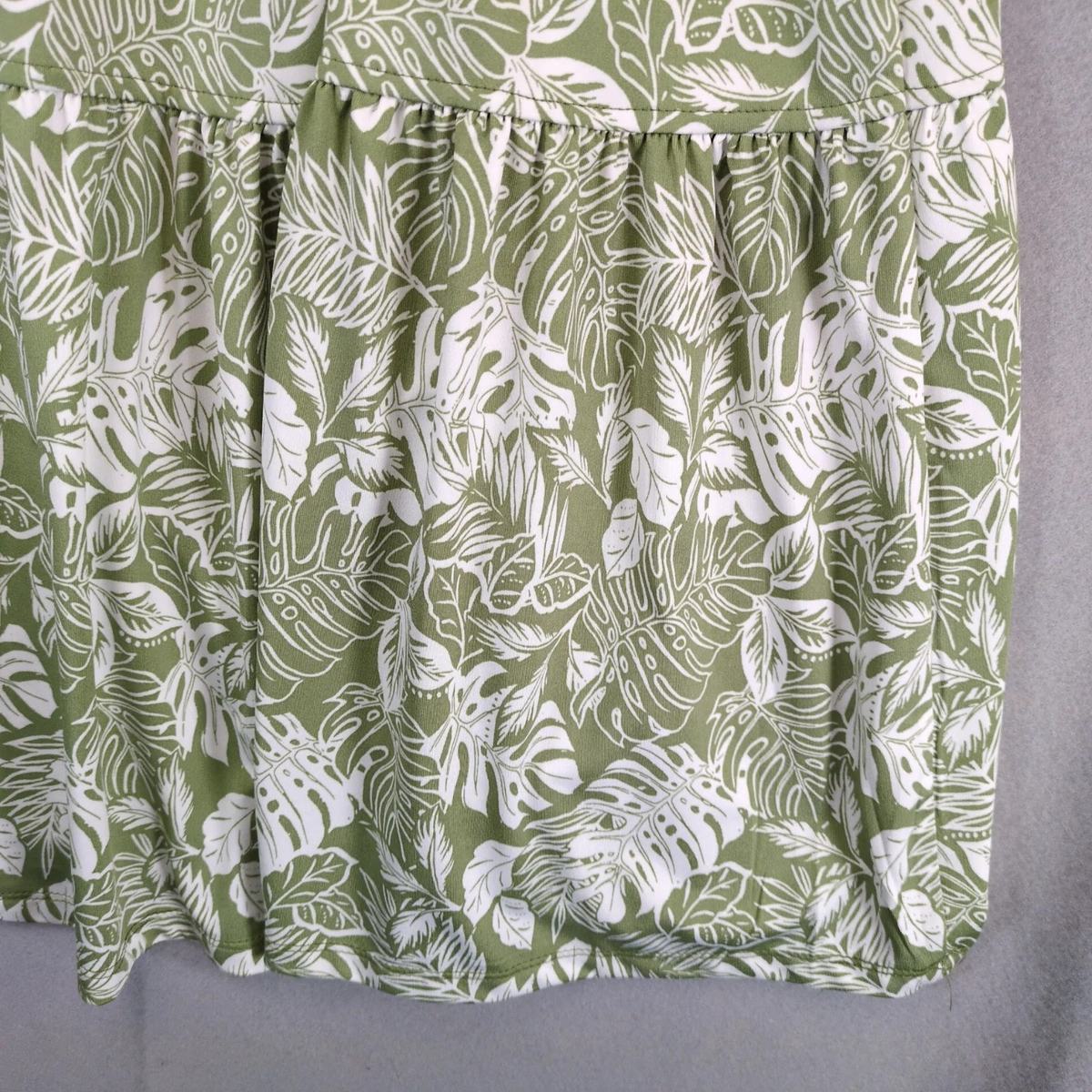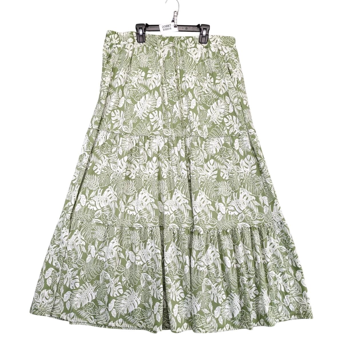 Robert Louis Green Tropical Print Tiered Peasant Maxi Skirt Sz XL Elastic Waist