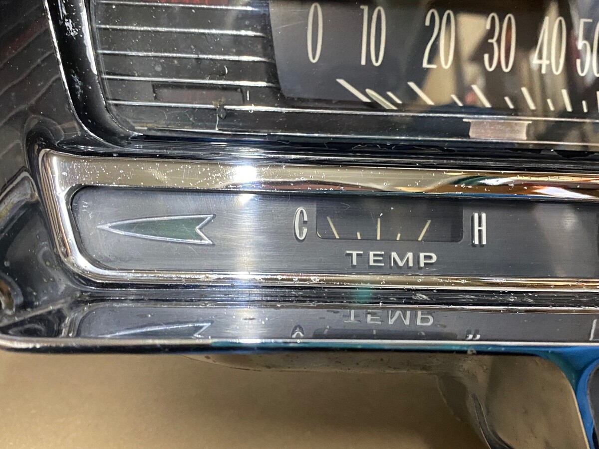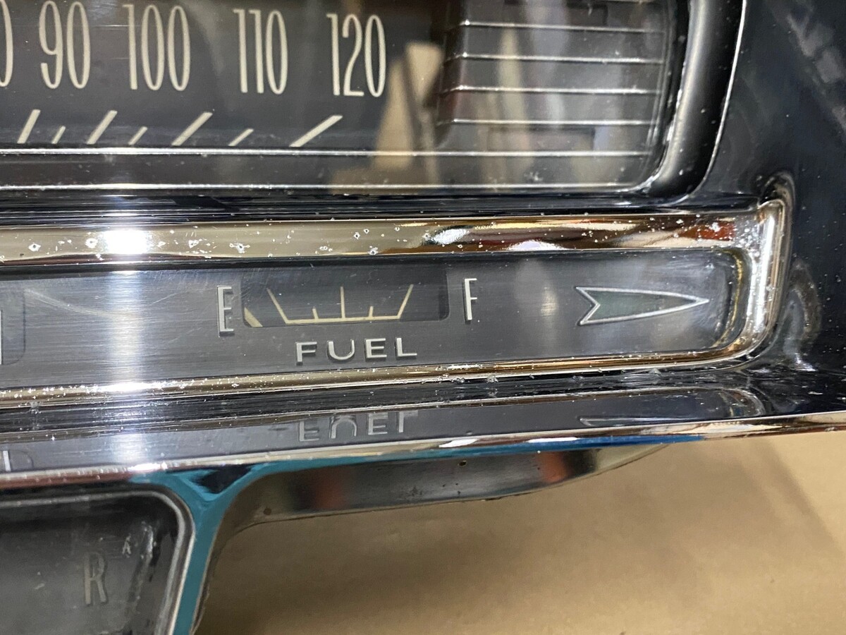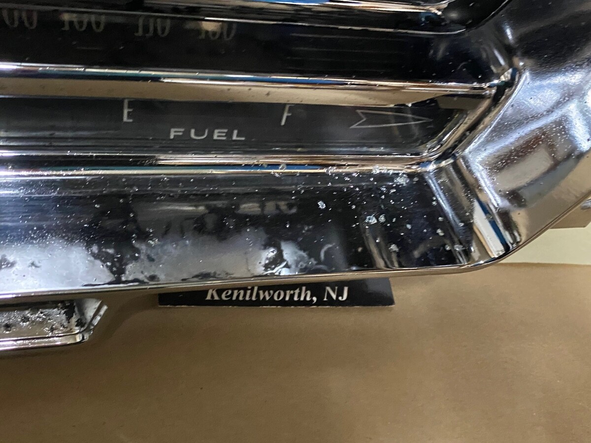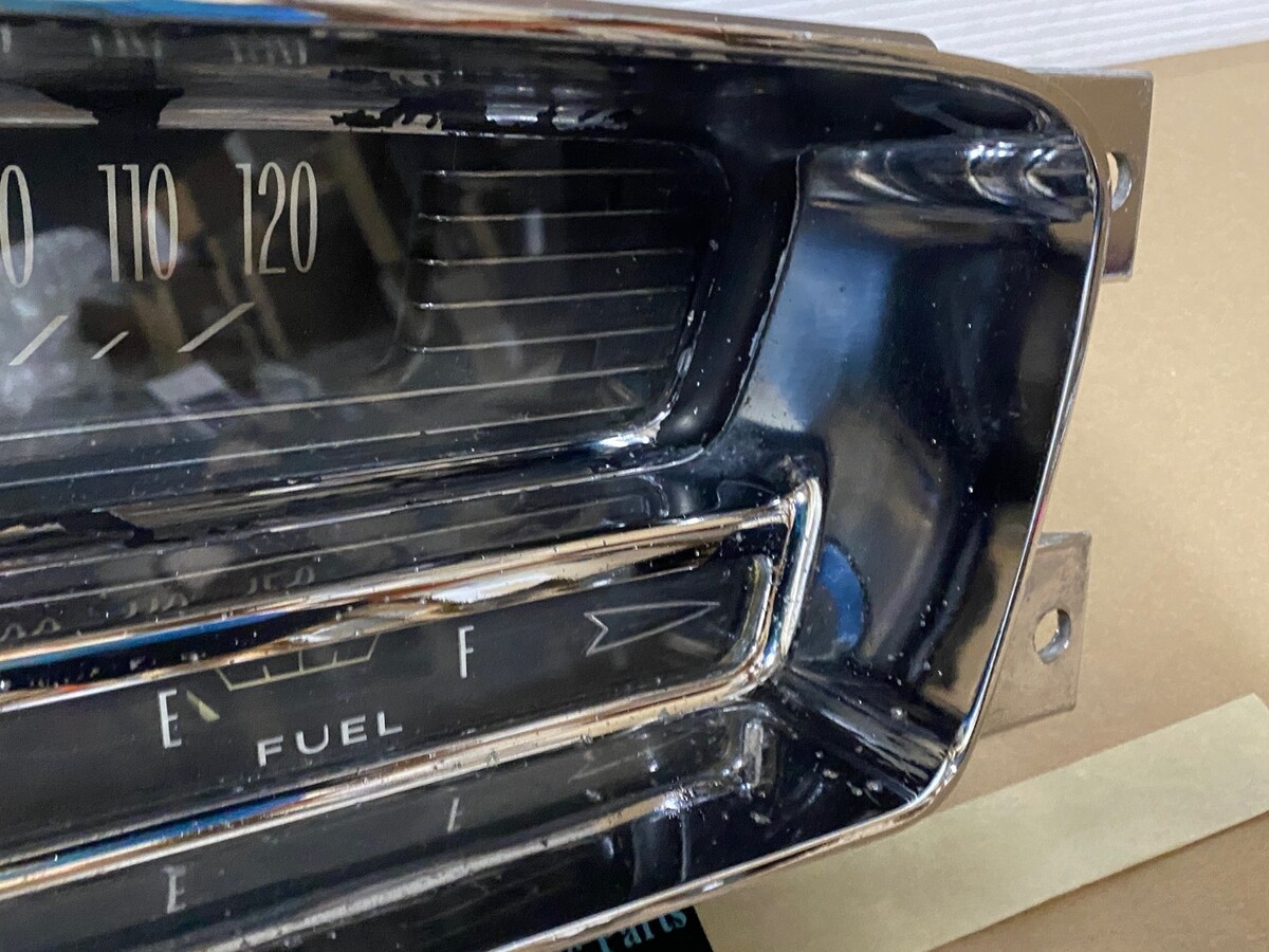 This OEM instrument cluster is in driver quality condition. Chrome has a decent shine, but does have some pitting. Speedometer was bench tested with a cable and drill and is in good working condition (see video), and the odometer and tripometer are in good working condition, but it is 60 years old, so may till need some service, it was not driven on highway, etc. Gauges and printed circuit board are untested. Please view the