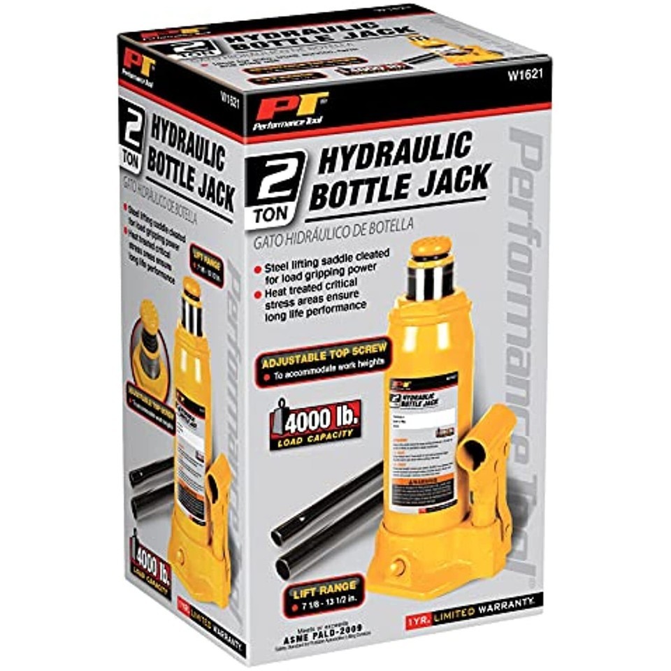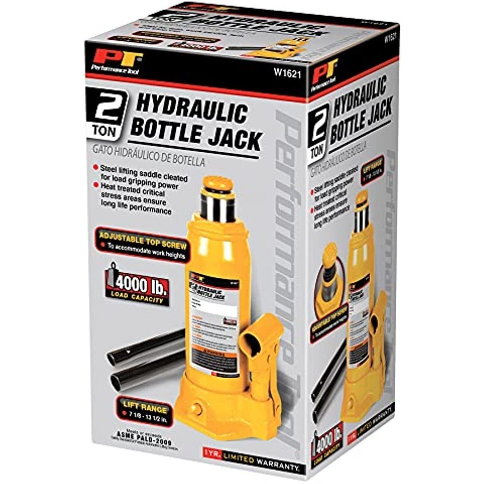 Product Description Wilmar Corporation was founded in 1971. Based in Renton Washington, Wilmar supplies major retailers as well as distributors throughout North America. By providing quality tools, great service, and innovative packaging and product support, Wilmar has become one of the leading distributors of professional tools in North America. Trading under the brand names of AirTIGHTTM, Performance ToolTM, Performance TechTM, MechanicsTM, Project ProTM and Northwest TrailTM, Wilmar focuses on providing a superior level of service and quality products that meet our customers expectations of product that carries our - of Satisfaction. From the Manufacturer Wilmar Performance Tool is an importer with nearly forty years of experience supplying high quality products with great value. You can be confident that the Wilmar Performance Tool products you purchase will perform to the highest standards. The W1621 Hydraulic bottle jack with two Ton lifting capacity can be used in home, garage, construction and industrial applications. It has a heavy duty, sturdy base for easy use. The adjustable top screw allows for variable heights from 7-1/8-Inch to 13-1/2-Inch. Complete with handle.