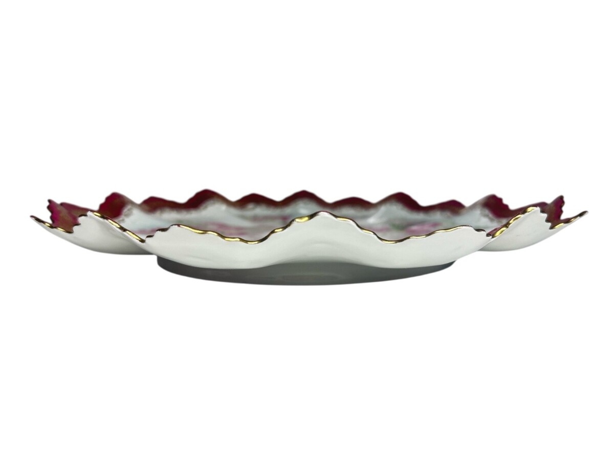 Moritz Zdekauer Porcelain Plate Scalloped Edges Hand-Painted Roses & Gold 1900's