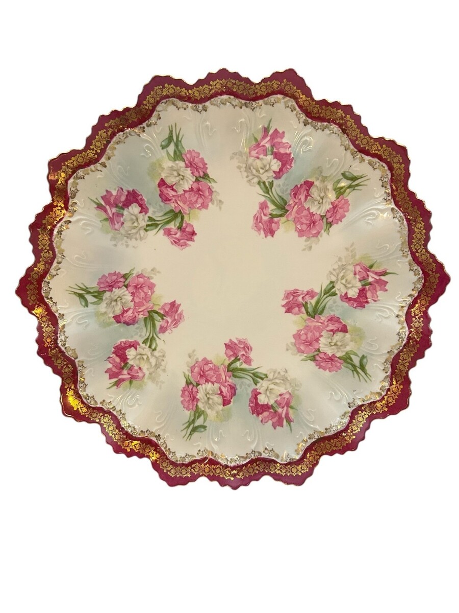 This exquisite porcelain plate showcases the elegance of early 20th-century craftsmanship. With hand-painted roses, intricate gold accents, and delicate scalloped edges, this Habsburg China piece embodies beauty and refinement. Manufactured by Moritz Zdekauer during 1900-1918 in Austria, it represents a timeless treasure for collectors and enthusiasts of antique dinnerware.