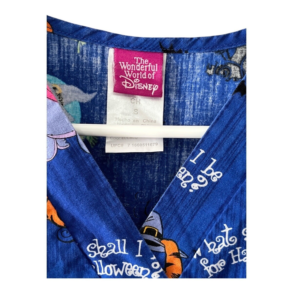 2 Women?s Scrub Tops Size Small Halloween Cat Print Disney Winnie the Pooh
