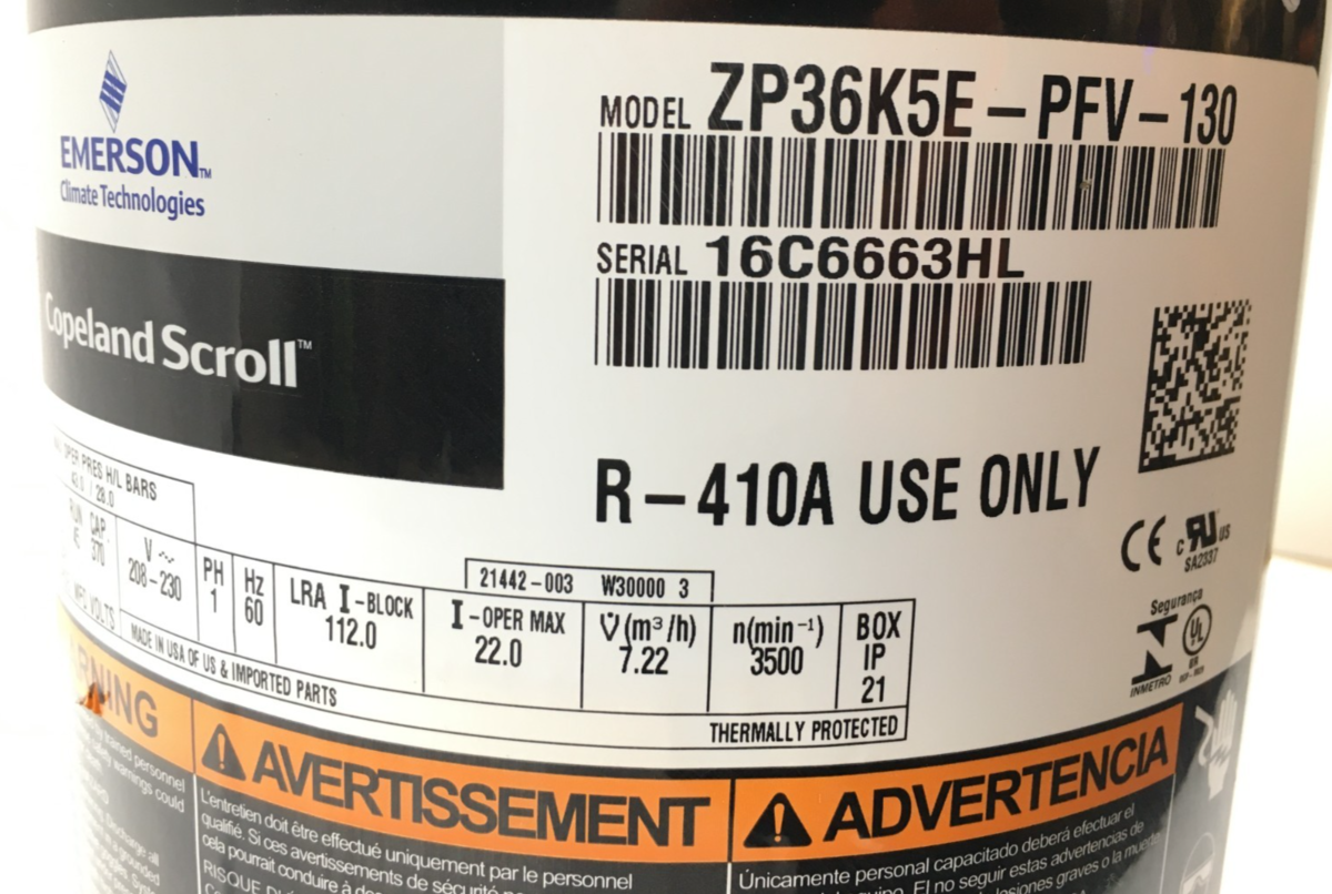 COPELAND Scroll ZP36K5E-PFV-130 36,000 BTU 230V 1PH 60HZ R-410A only! used #C68