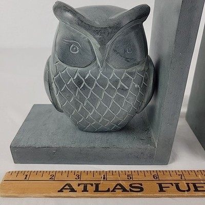 Owl Bookend Set Hand Carved 2 Gray Sculpted and similar items