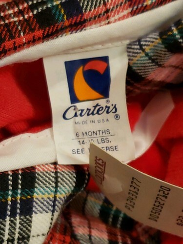 Vtg Carters Red Velour Outfit 6 Mos Baby 2pc Plaid Beret USA Holiday Bodysuit