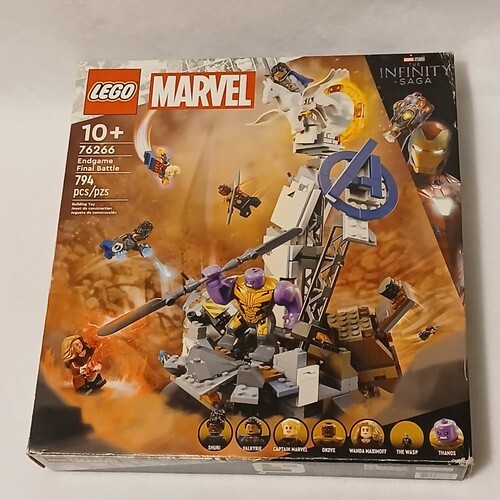 This listing is for a Lego "Marvel: The Infinity Saga, Endgame" Playset. It is NEW in the original unopened box. The box has minor shelf wear, see photos. There are 794 pieces. It is recommended for ages 10 and older.